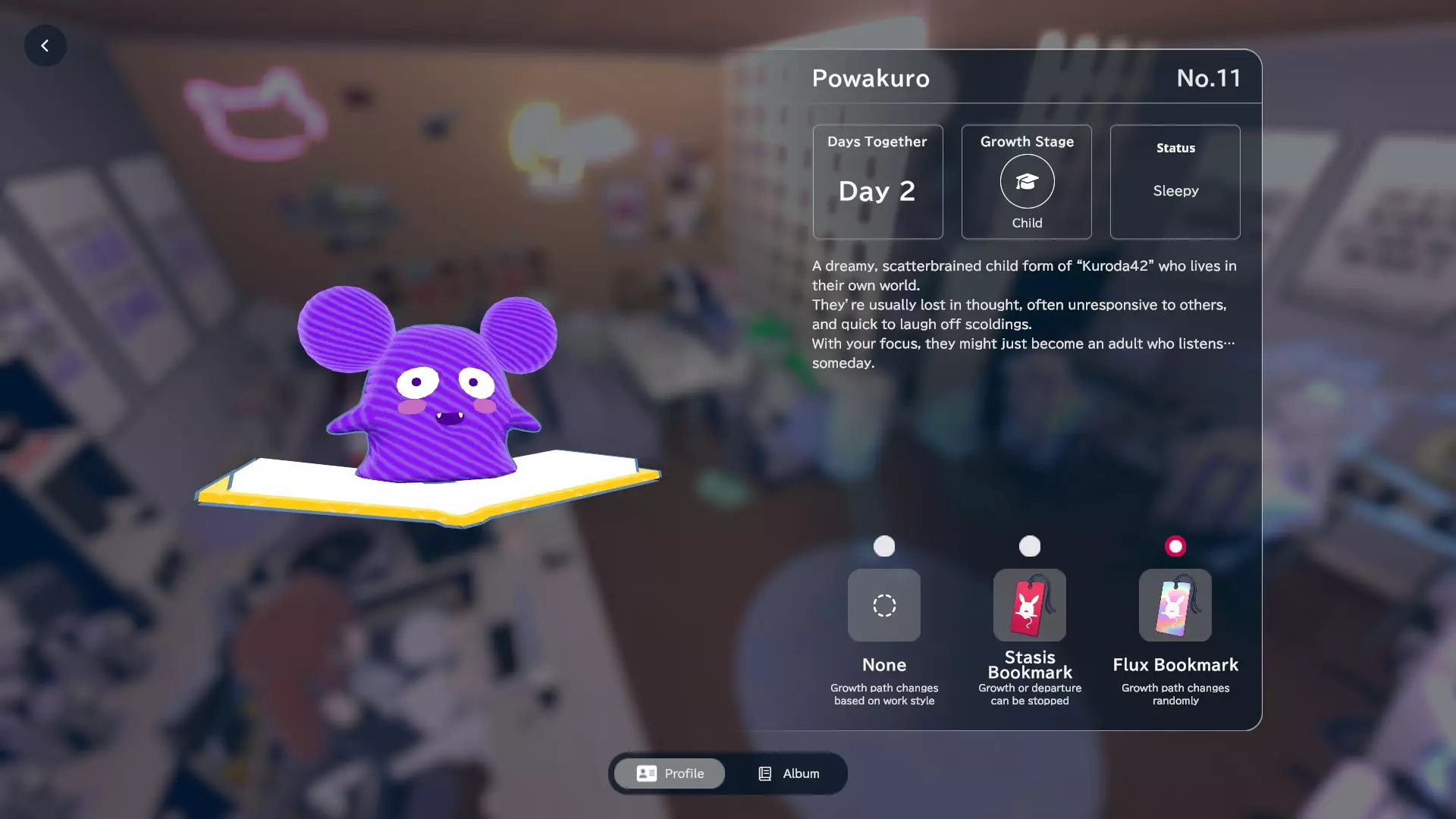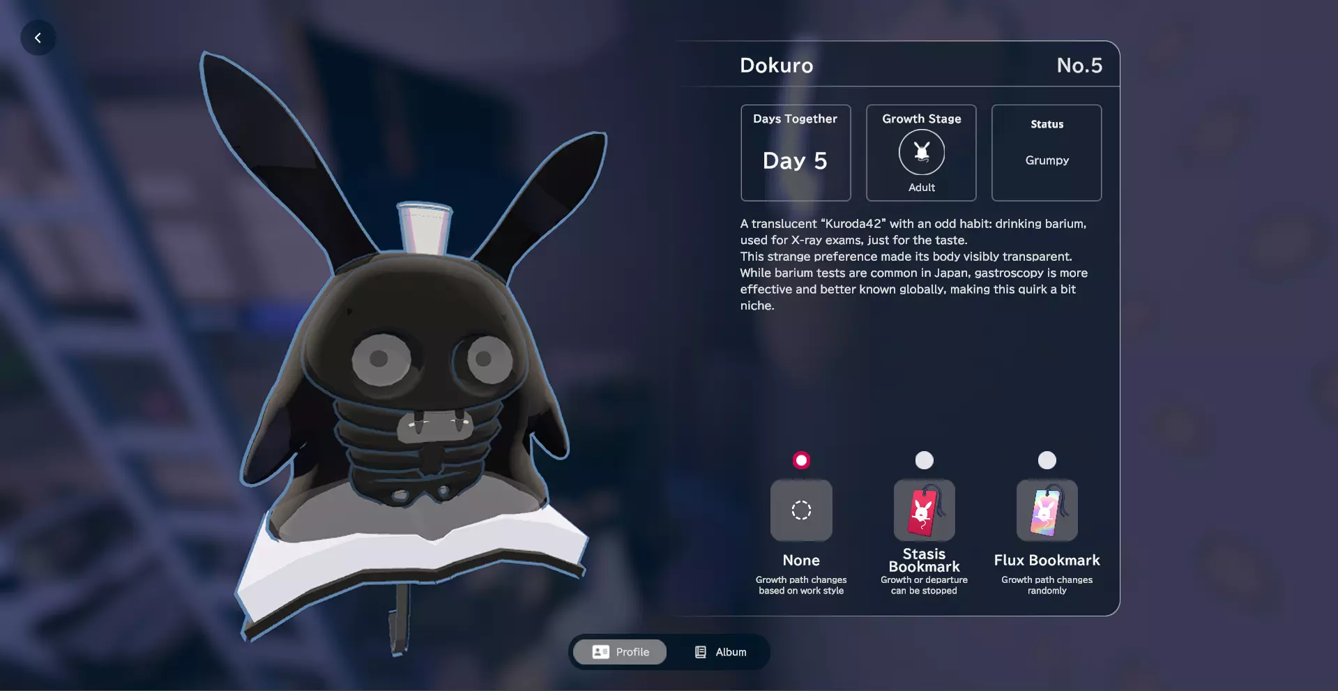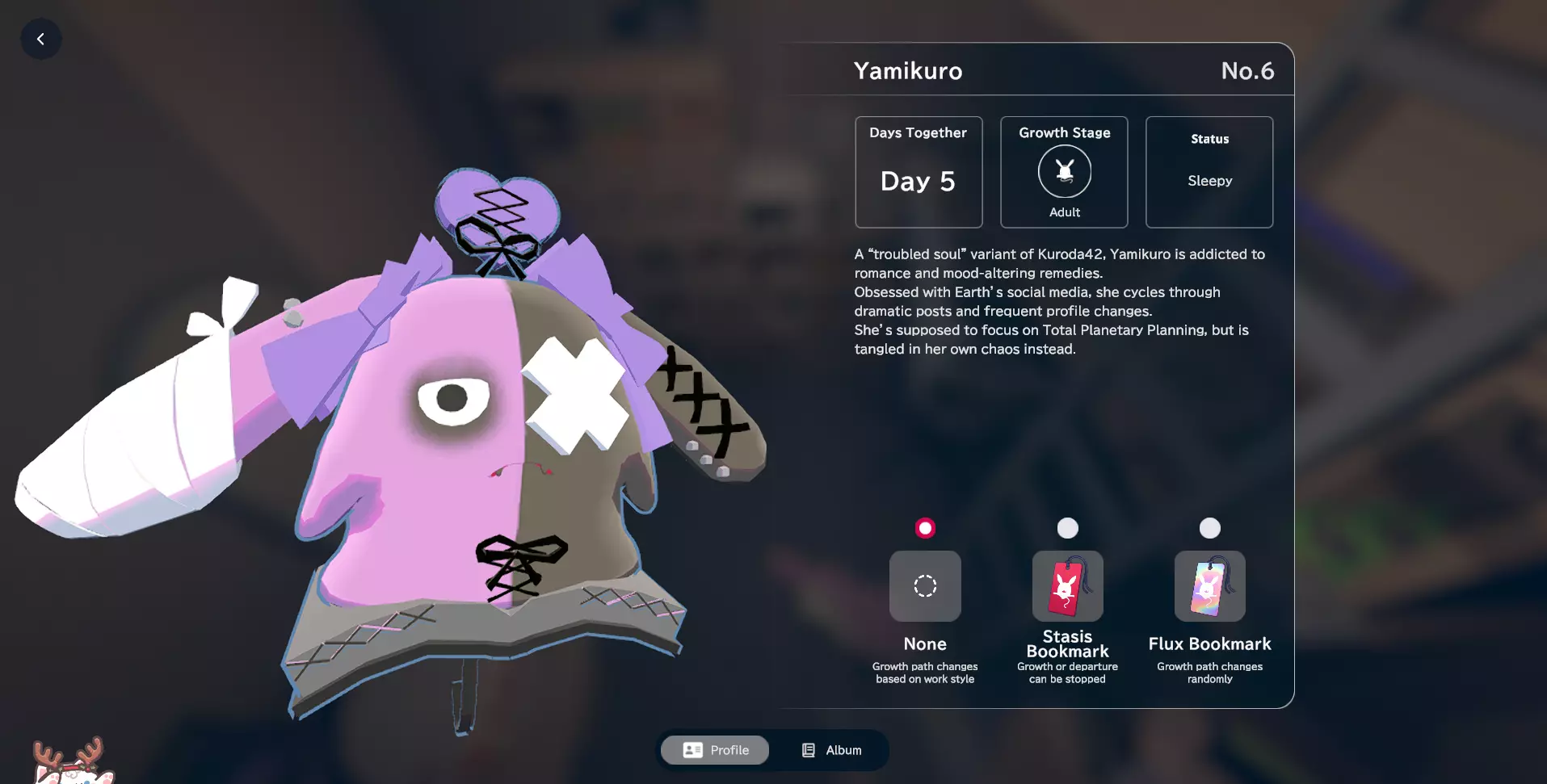 我通过停留在应用程序上且未进行任何特定操作获得了Bonkuro。理论上,这个形态代表了黑田42的基本形态。个人资料