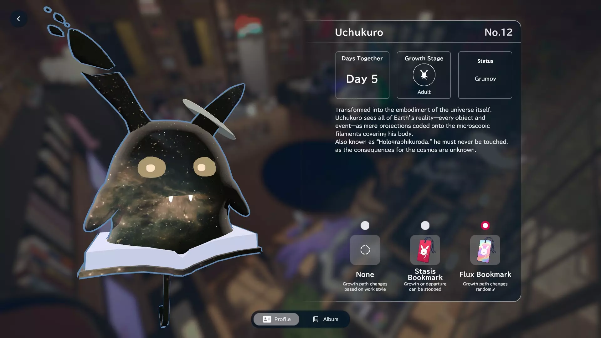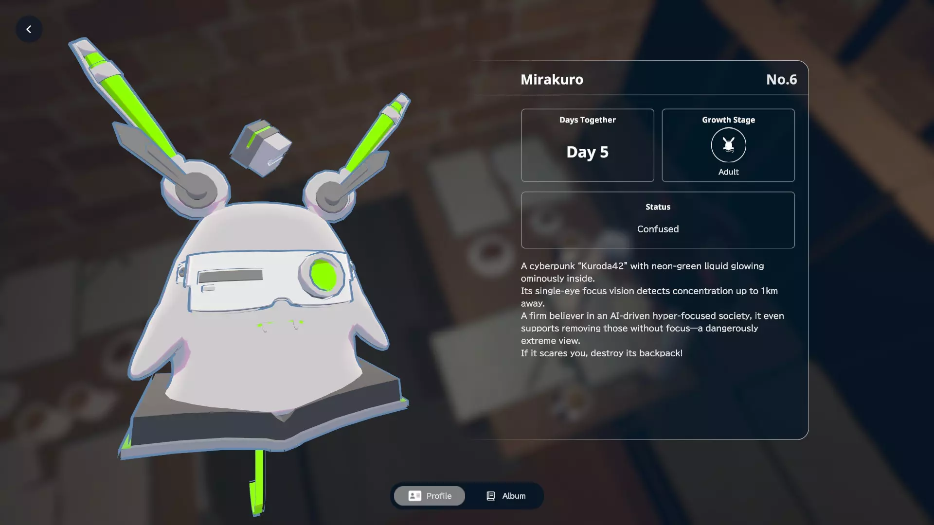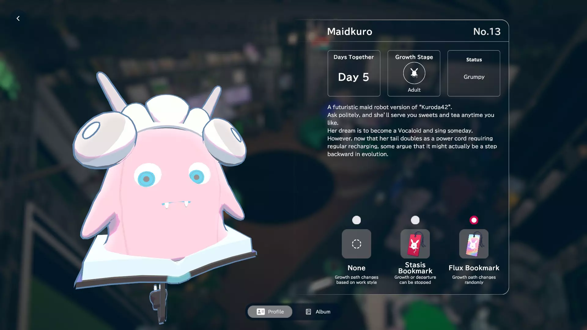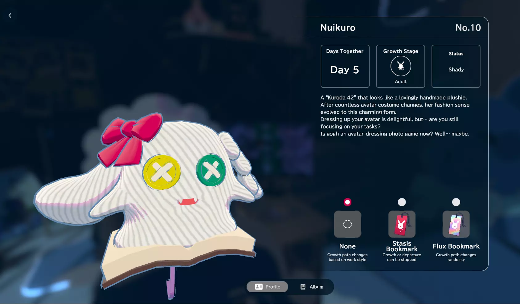我通过停留在应用程序上且未进行任何特定操作获得了Bonkuro。理论上,这个形态代表了黑田42的基本形态。个人资料