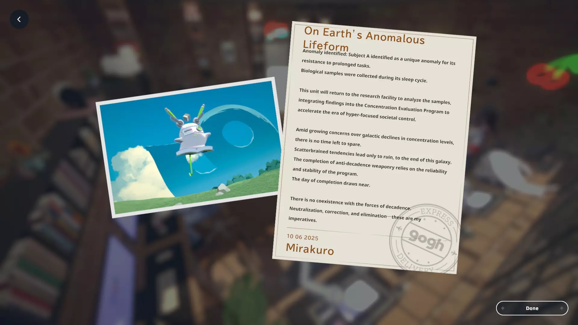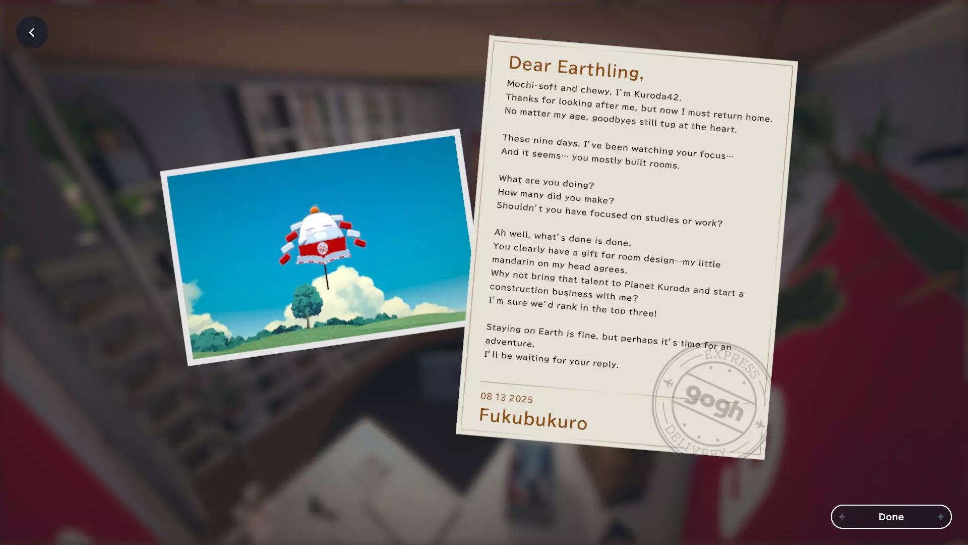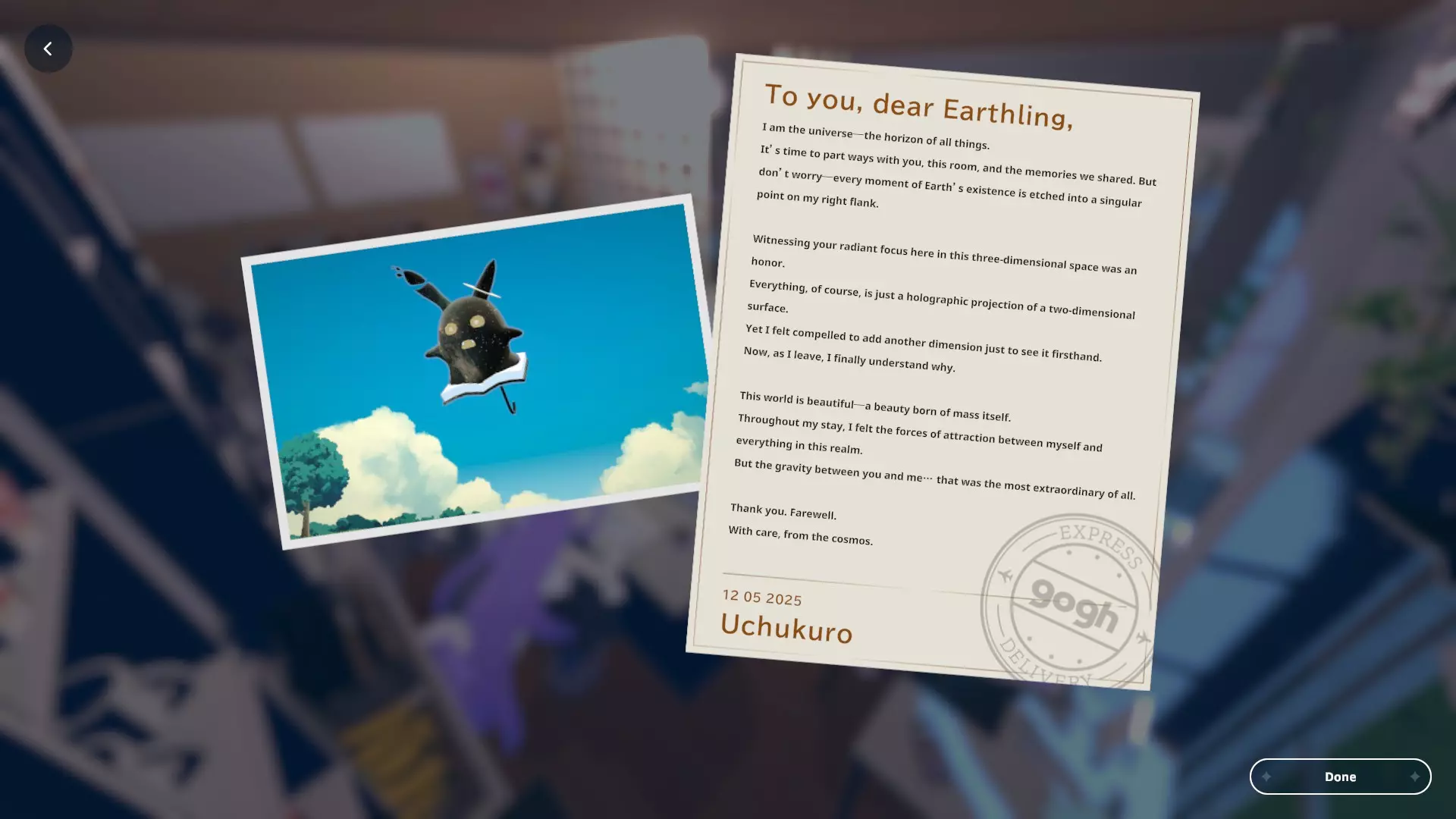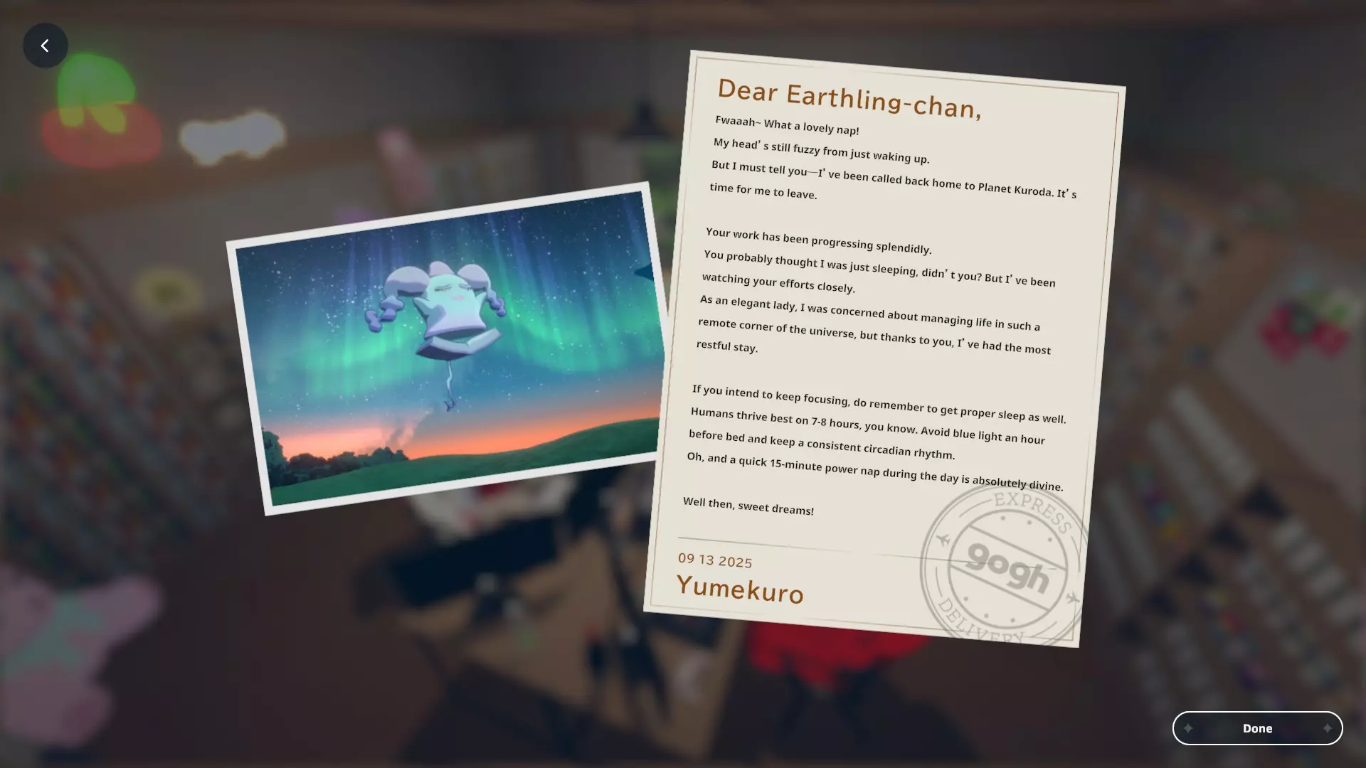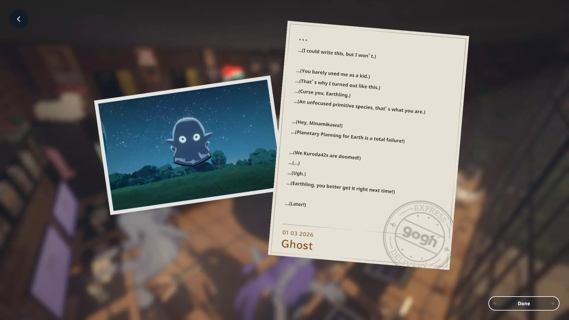 我个人关于如何获取黑田24不同形态的笔记 黑田42概述 在电子游戏《gogh: Focus with Your Avatar》中,黑田42是一种神秘生物,玩家可以在工作时实时养育并观察它成长。 以下是官方网站上对黑田42的描述: 引用自《gogh: Focus with Your Avatar》:这个自称来自神秘“g”陨石的“全行星规划师”的古怪外星人,会与容易分心的人一同降临,以帮助他们集中注意力——至少它是这么认为的。它发自内心的建议往往显得滑稽地偏离目标,但嘿,它尽力了。生命周期 进化日 蛋 第1天 幼崽 第1天 孩童 第2天 成年 第5天 毕业 第10天 黑田42列表 蛋 神秘蛋 金蛋 幼崽 豆黑 孩童 噗尼黑 超酷黑 丸黑 咩咩黑 咪咪黑 波瓦黑 成年 邦克黑 咖啡黑 达利黑 多库黑 福袋黑 八咫黑 闪亮黑 桑名黑 女仆黑 马克黑 真黑 奇迹黑 星云黑 牛奶黑 猫咪黑 面包黑 飞弹黑 宇宙黑 暗黑黑 梦境黑 幽灵 【蛋】神秘蛋