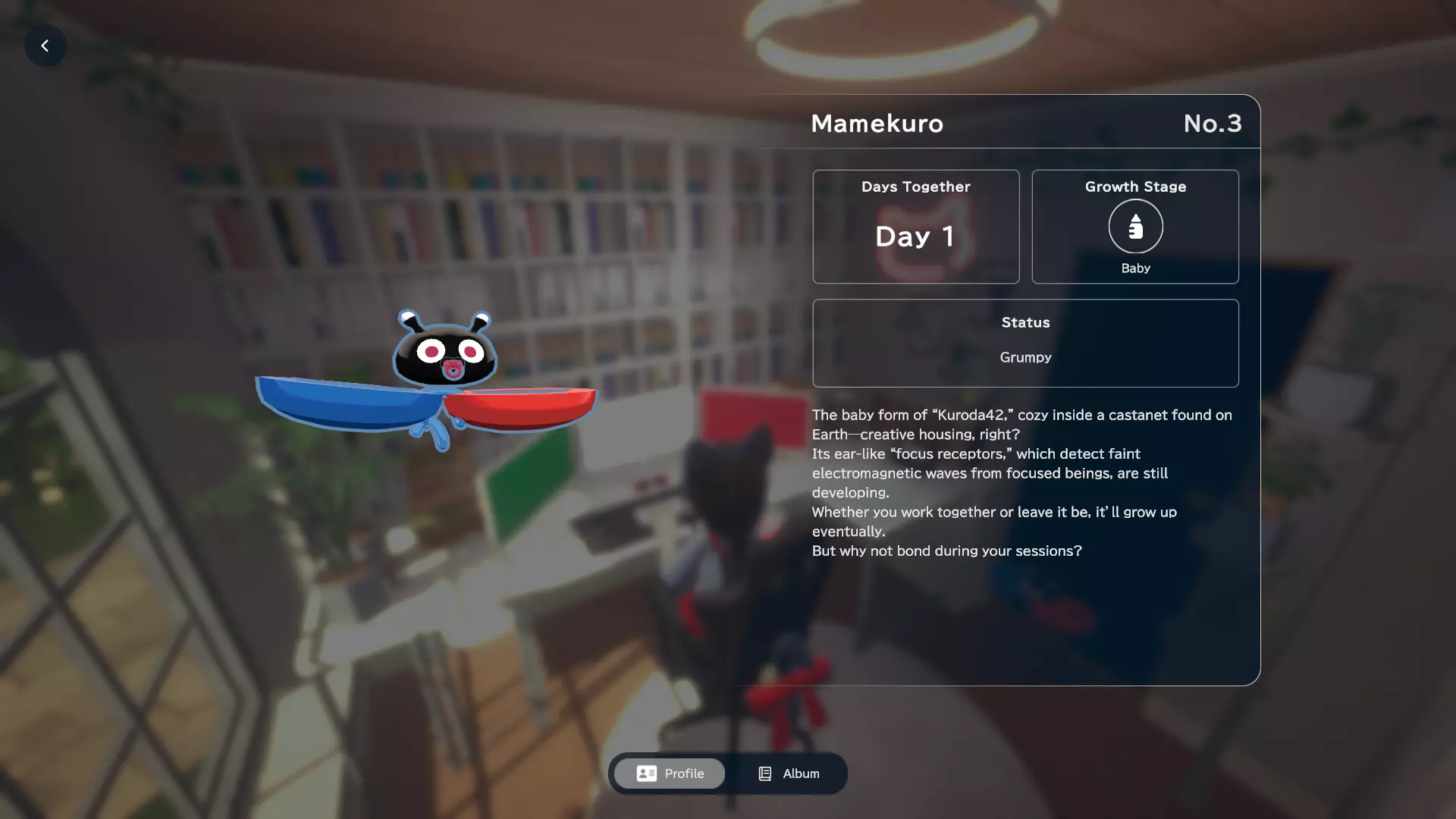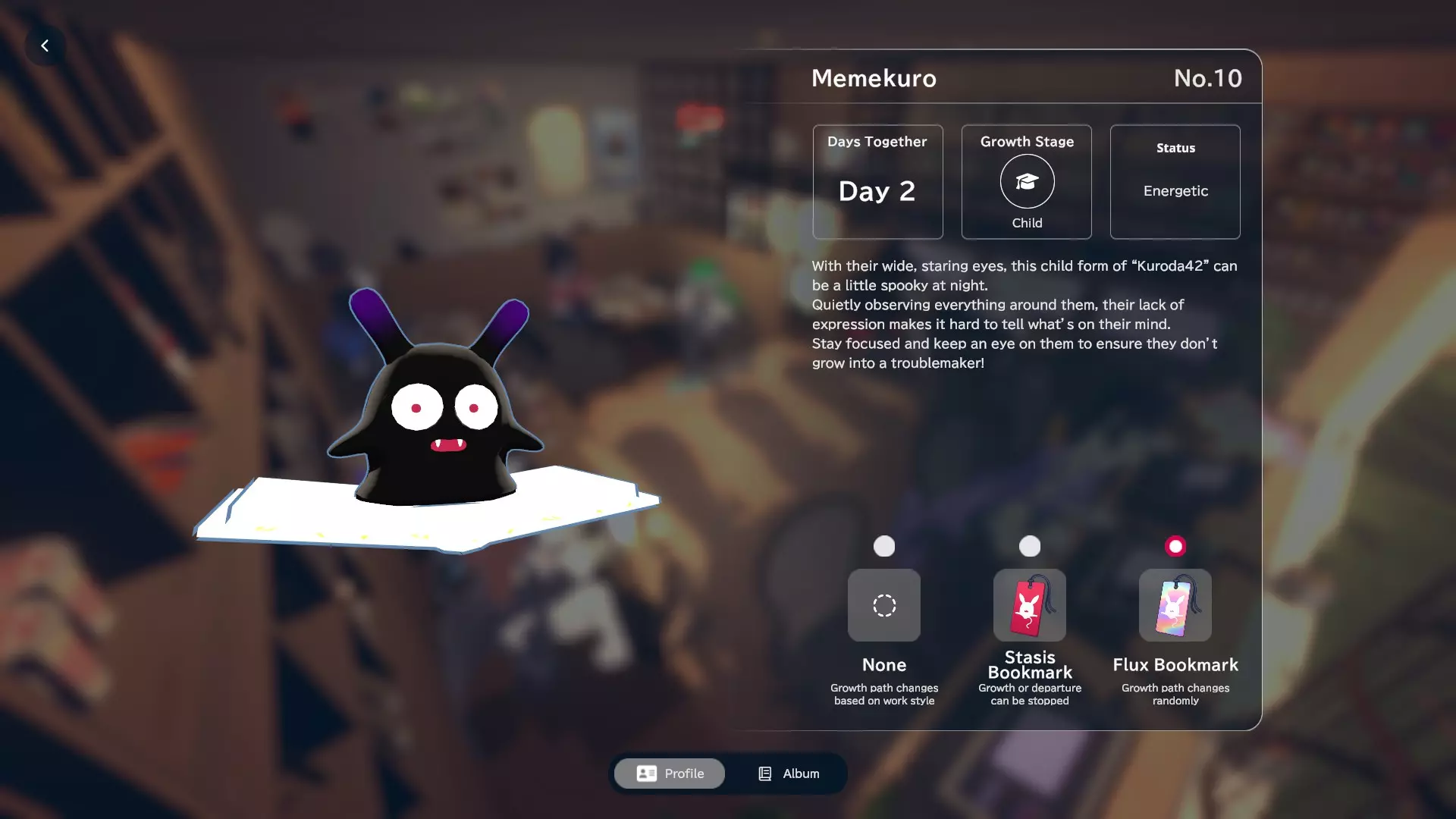 当满足以下条件时,Mamekuro会进化为Memekuro:天气:雨天;时间:傍晚。你可以在右上角菜单中选择这些选项。个人资料