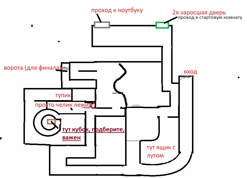 接下来,我们需要找到笔记本电脑,为此要前往迷宫。为了让你不用找太久,我快速画了一张标有所有重要细节的地图。