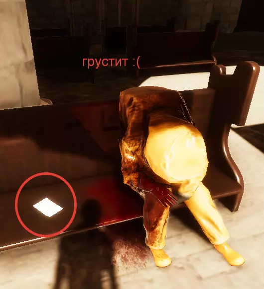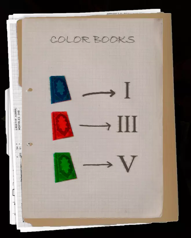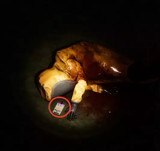 在你解决掉所有人后,前往房间尽头那个坐着的尸体处。他身上会有一张纸条,上面写着我们需要的卡片颜色,比如我拿到的是粉色。