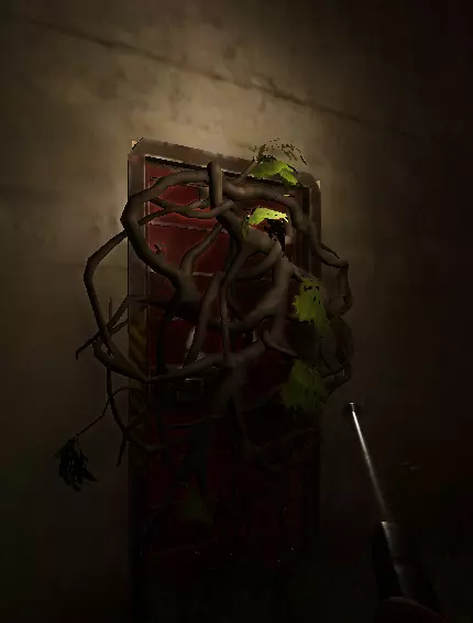 我们走进走廊,来到那扇被藤蔓覆盖的门前。先清理掉怪物。