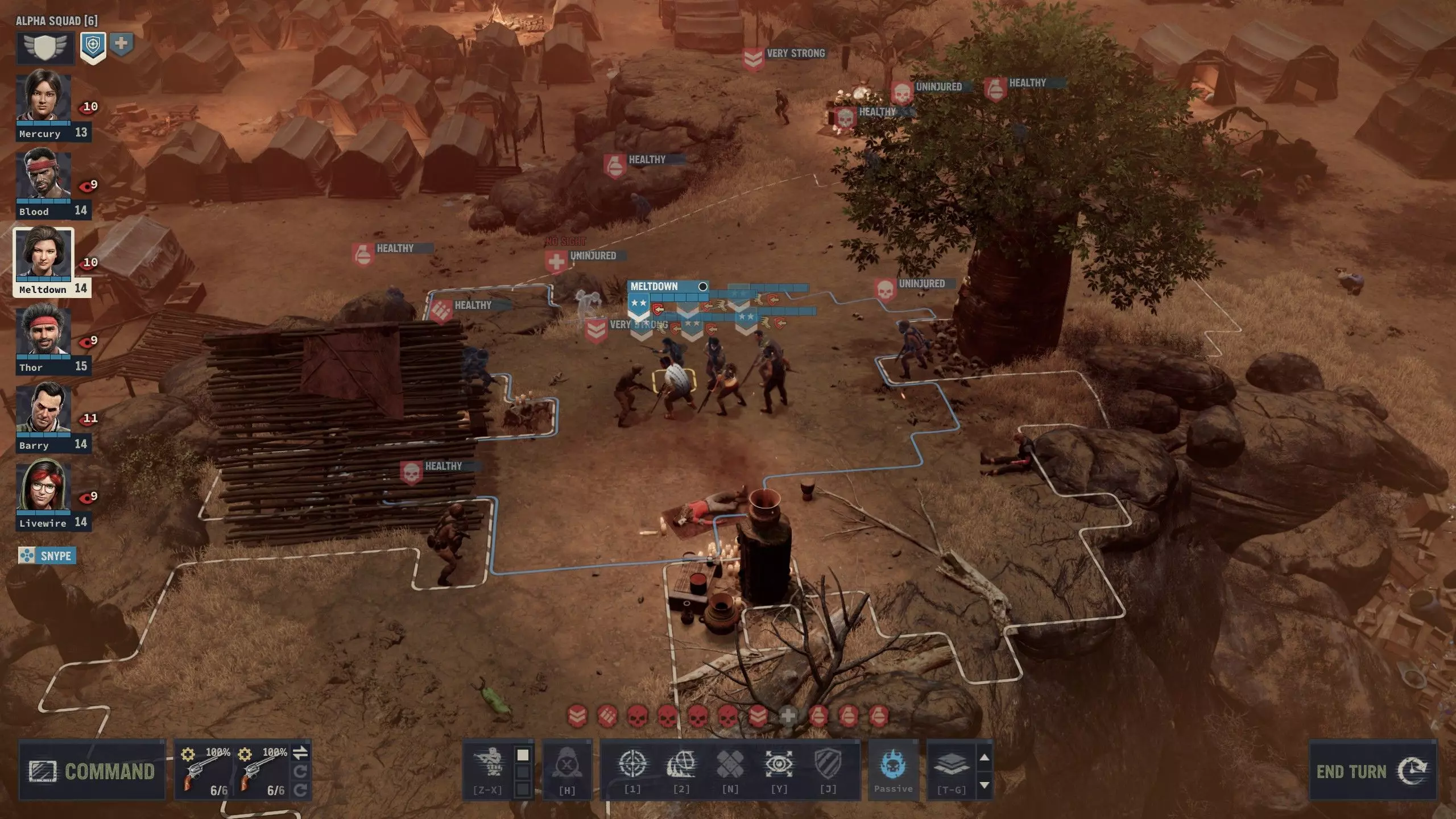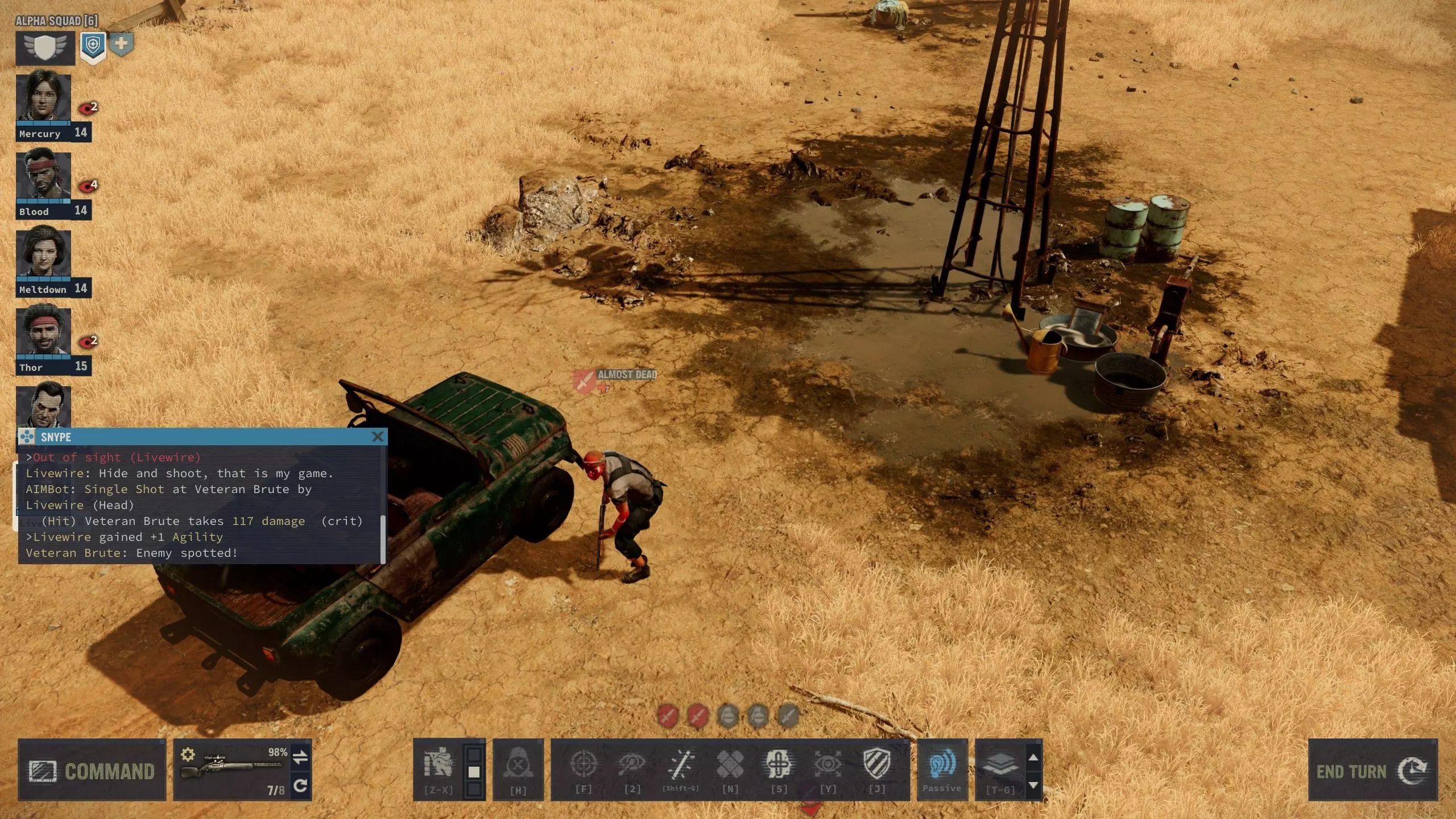 A well-built team doesn't give a darn about being outnumbered and surrounded in an ambush. Unofficial trait tier list Top tier Negotiator, Scoundrel, Psycho and Teaching: You'll generally want just one of each in your main squad. Your I.M.P. merc will probably do best with either Negotiator or Psycho. It's okay to have multiple scoundrels, especially in case of Fox, for the free weapon swap, but generally not the other two personality traits. Teaching is not a proper personality trait, but it's to be treated exactly same otherwise, since it doesn't stack. CQC Training, Auto Weapons and Heavy Weapons: No merc in roster has two of these, so if you'd like, you can make a very effective automatic gunner I.M.P. merc out of two of these. Throwing: Get this trait with moderate explosives skill and enjoy the carnage. Works for both throwing knives (including Blood's Flying Daggers) and thrown explosives. Let's you build your I.M.P. for explosives with reduced strength. Mr. Fixit: The only reason Steroid is viable in comparison to Kalyna. If Livewire didn't have this, she'd be more balanced. Base line Ambidextrous, Martial Arts: These traits bring a decent amount of use out of their respective weaponry. The former is essential on Tex and on many builds for Fox and Vicki, and the latter is for making any use of Dr. Q's talent as well as helping Blood's survival in close quarters. Stealthy: Universally effective for stealth kills, but far from essential. Mercs with this trait seem to get sneaky kinds of performance tasks more often, and it's usually not too difficult to fulfill them. Optimist: I'm not sure if this trait can stack, but I have a feeling it might do that. It's most useful in early game when you may not yet have (reliable) morale proc from Inspiring Strike or a highly competent leader in your squad(s). In case I'm not wrong and it does stack, it is also rather useful in late game when bringing along multiple squads to same engagement and tougher opponents. Spiritual: It's nothing to scoff at for the mercs who have it, though it's hard to gauge how effective the trait is in practice. Below average Hand-to-Hand: Just shoot them before they get close. Some mercs who don't have this should, so I feel like this trait has something of identity crisis. Night Ops: It's okay for mid range assault rifle users, but not anyone else. NVGs, flares and chemlights, and thermal scopes and tactical devices are usable by almost everyone. It's basically a band-aid for mercs who lack access to light sources. Loner: Only useful for soloing, but at least there's no negative effects. Claustrophobic: In most cases this is a minor hindrance. You can always leave the merc with this negative trait outside the underground sector, but there are couple of places where it's not really an option. The negative effect persists for quite long time though. Approximately half of the late game Legion squads have tamed hyenas and there's a lot of marsh tiles with hidden crocs. Black hole tier Zoophobic and Pessimist: Only MD, Red have these, and they suck. In late game you probably have enough morale boosts available to negate them, but they are still very bad because they are unpredictable, unlike Claustrophobic. Rehabilitated Larry also has Pessimist but at that point morale shouldn't really be an issue anymore. Old Dog: You can't select this during I.M.P. profiling for obvious reasons. The XP boost can help bring latecomers from recruit tier up to speed, but for your main squad the bonus is not very useful. It prevents making comprehensive use of Fauda and Len, which is a huge shame in my opinion. I have a strong desire to remove it from them both by use of mods. Not an issue for Gus. Important mercs As stated above, you need mercs to wield your weapons, and you probably want good soldiers. Let's go over a few quickly. A more proper documentation on weaponry mentioned here will follow in subsequent sections. Again, if you're here just for modding tips, you don't need to read through this. Institute for Mercenary Profiling My recommendation for your custom I.M.P. mercenary is a leader, which means maximizing your leadership. It's going to be very handy early on in raising militia and team morale throughout the game, and it's also required for many dialogue checks. You could just as well build a specialist, but with the shortage of economical and well-built leader mercs on the roster as well as abundance of marksmen, I advice against it. You can also get very useful traits like combination of CQC Training and Auto Weapons or Stealthy which are not available from the A.I.M. roster. A.I.M. recruits Barry Unger That's a name you'll be hearing a lot... but hopefully not here. This section will be the only one where the man himself is mentioned in this guide. No words can do justice for his ability with explosions, at any rate, so I'll say just this: He's the most reliable explosives expert. Fidel is anything but reliable. Talents of Larry and Red pale in comparison to Barry's Boutique Explosives, and their default builds are not very good either. It's a sad fact of life... or perhaps there is a God after all and he favors the virtuous. Taking Barry along sooner rather than later will also get you plenty of parts by defusing explosives, all the while not singeing your fingers, but you could also try defusing landmines with someone of average explosives skill early on. Just remember to get prone first and stop before you drop. But as soon as you can get your hands on a shotgun, you should bring Barry along. Free movement from both grenade throws and shotgun attacks is a key feature in surviving tough situations. Leili "Livewire" Idrisi I don't blame Livewire for being overpowered. I blame overpopulation. Early on she'll contribute most to your fights indirectly by revealing enemy positions and with her high mechanical skill, ensuring your hard-won parts won't go to waste and helping your gear stay in its original shape and functi