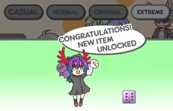 米欧(节日)与圣诞蛋糕骰子 解锁米欧后,在任意游戏模式中使用她进行5场游戏(可能),即可在附加内容区域解锁名为【秘密圣诞老人】的单人章节。如果在离线模式下进行5场比赛后未解锁【秘密圣诞老人】,请尝试在线模式。我个人在米欧(节日)更新前已经使用米欧进行了远超5场的比赛,但有人告诉我“任意模式5场比赛”应该有效。 解锁【秘密圣诞老人】后,使用米欧在普通或更高难度下通关即可解锁米欧(节日),若能在极限难度下通关,还将解锁她的圣诞蛋糕骰子。 注意事项 ‣ 这些现在是基础游戏事件,可在任何时间完成。- 所有操作必须按顺序进行,每次只播放一个过场动画。 - 如何快进(仅离线模式):按住CTRL键可使游戏速度变为2倍,按住Shift键可变为3倍,同时按住两个键则变为5倍。 - RPG服装在商店购买后,可在【帽子】选项卡中找到。 - 解锁 Mio 的条件原本是在超难难度下击败 RoPoChi。最近的合作模式更新(3.8版本,2021年8月26日)已将其改为【极限】难度。 - 在极限难度下击败 Mio 的黑暗城堡,将解锁 Mio 的火焰骰子!