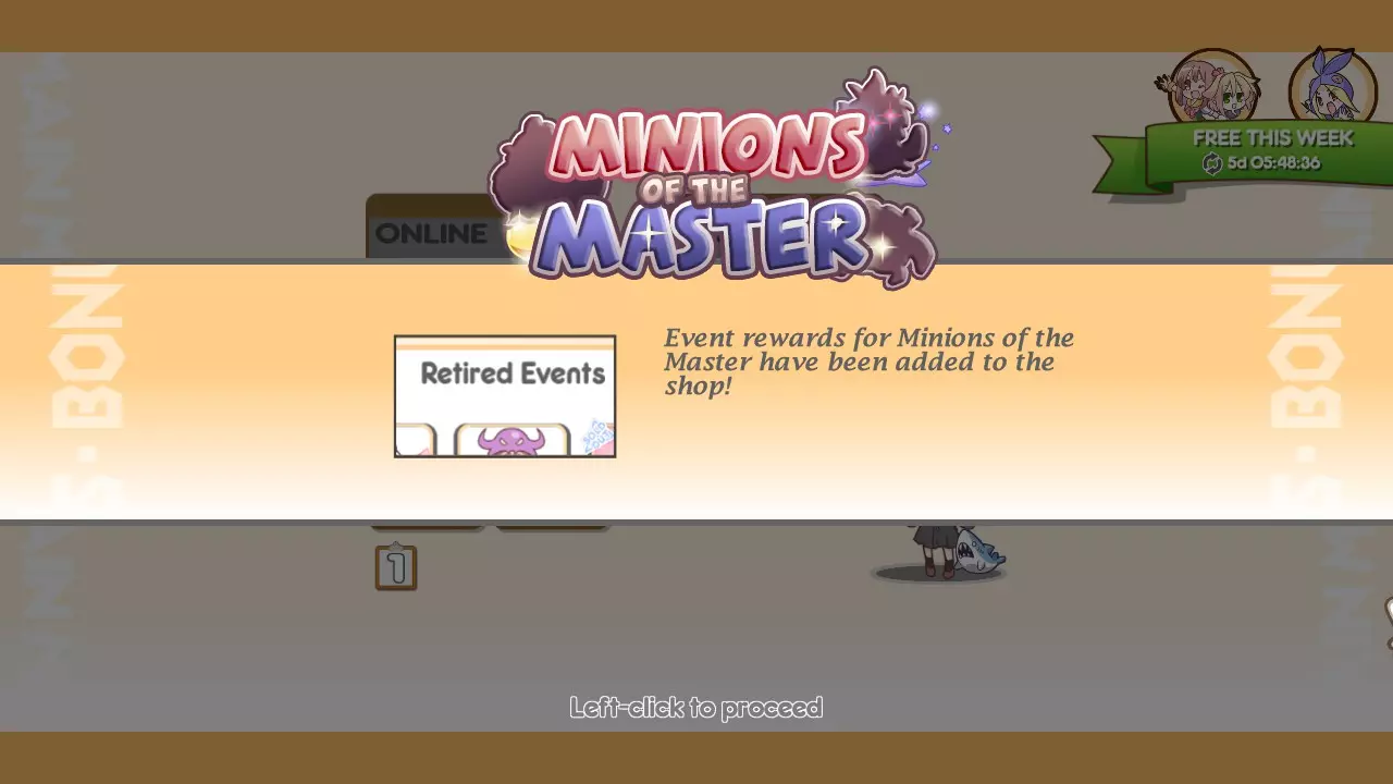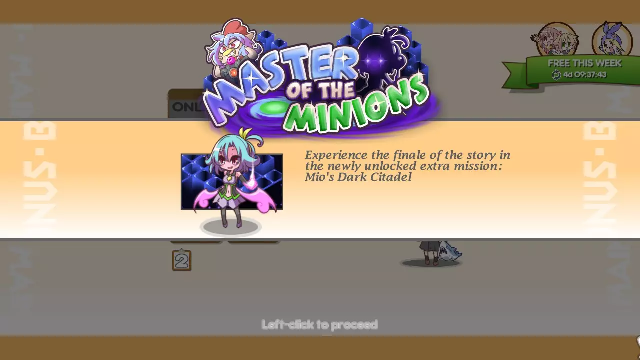 击败这3个Boss后(顺序无关),返回主菜单会触发另一段过场动画【Minions of the Master - Cleared】,这段动画也会添加到你的画廊中。(如果返回主菜单后动画没有播放,请检查画廊,可能你已经拥有该动画) 查看该动画后,游戏商店中所有【Minions of the Master】外观将解锁,不再显示“即将推出”。 【Minions of the Master】外观包括: 家园标记:天使标记、恶魔标记、洞穴标记、城堡标记 宠物:金蛋宠物、M10眼球宠物、迷离之星宠物 配饰:QP、Suguri、Marc和Natsumi的RPG服装