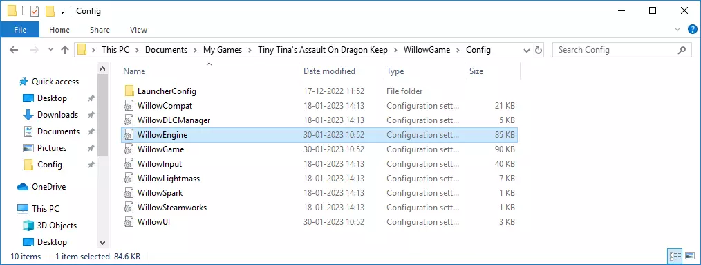 一个小的画面调整... 和所有《无主之地》系列游戏一样,你会在这款游戏中看到所有物体周围都有黑边。如果你不喜欢,可以通过一种方法去除它。去除黑边还能减少一些GPU资源占用,让画面看起来更流畅。 要进行此操作,首先找到以下路径,然后用记事本或其他文本处理应用打开WillowEngine配置文件(记得先创建备份)。