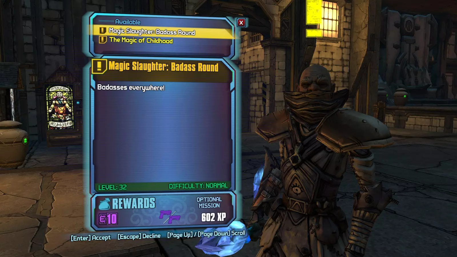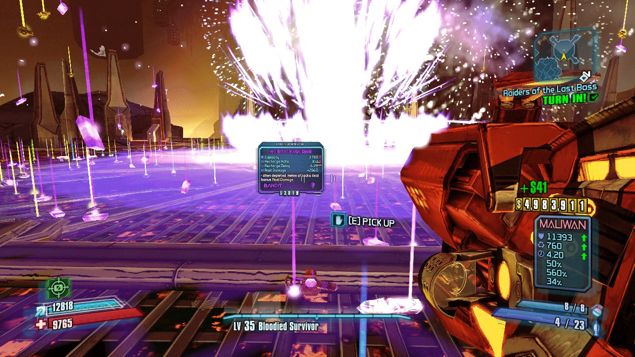 描述:当你达到35级时就能获得这个。这是目前TVHM模式(真实 vault 猎人模式)中可达到的最高等级,也是游戏中的最高等级。魔法屠杀:在马德琳神庙的坏蛋回合(第6轮,可重复)是最快的升级方式。只要你能在这一轮中存活,就能获得经验值。