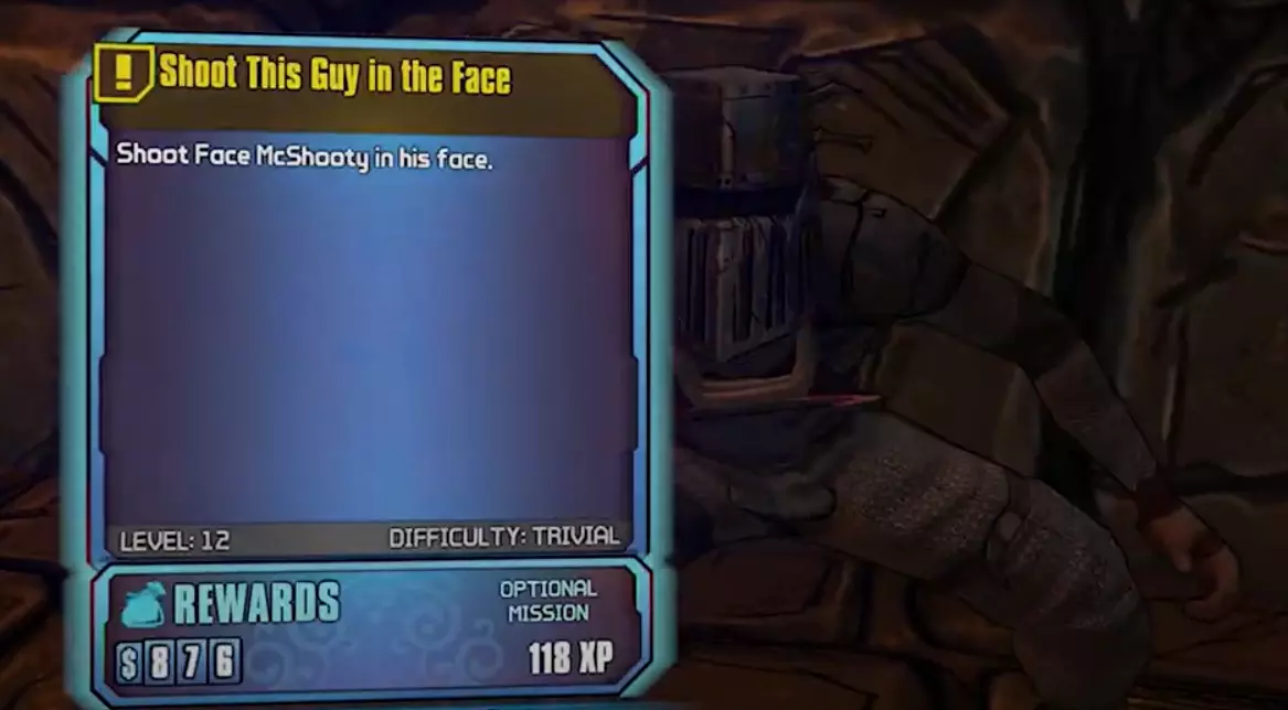 让我们来看看这款游戏中的任务会是什么样子…… (A)角色扮演游戏 (B)否认、愤怒、主动行动 后末日启示录 闪耀盔甲中的埃尔 洞察检定 伪装极客 大型多人在线角色扮演第一人称射击游戏 致命失败 环保主义者 迷失灵魂 (C)矮人盟友 灾厄 人靠胡须 愿以王国换魔杖 吵闹机器人的学徒 石头中的剑 (D)游戏之游戏 凛冬血途 战利品忍者 我逝去的兄弟 ???(朝这家伙脸上开枪) 护身符 宠物巴托·斯泰利昂 喂养巴托·斯泰利昂 找到谋杀林神庙 魔法屠杀:第一回合 魔法屠杀:第二回合 魔法屠杀:第三回合 魔法屠杀:第四回合 魔法屠杀:第五回合 魔法屠杀:硬汉回合 童年魔法(E) 最终Boss的掠夺者(在完成“假极客”和“游戏之游戏”后解锁) 虽然大多数任务都很容易完成,但有一些可能会让你觉得有些棘手。以下是对这类任务的部分简要说明... 1.MMORPGFPS:在这个任务中,你需要完成“蹲伏嘲讽xxDatVaultHuntrxx:0/2”。要做到这一点,杀死xxDatVaultHuntrxx,然后直接蹲在他的尸体上。和其他人一样,他也会复活并回来。1. 再次执行相同操作。 2. 贝恩:在此任务中,你需要“拾取加尔的地图”。 3. 魔杖风云:在此任务中,你需要执行“将魔杖插入兽人并射击兽人面部”。使用狙击步枪射击会有所帮助。如果目标兽人死亡也不用担心,他会重新生成,直到正确完成此操作。 4. 战利品忍者:在此任务中,你需要“调查斯图爵士”。 5. 矮人盟友:在此任务中,你会遇到一个区域,那里有一些漂浮的岩石,你需要跳到这些岩石上,以到达并拾取一个任务物品。如果你还是没能成功完成这个跳跃,蒂娜会为你开辟一条路的。 :)