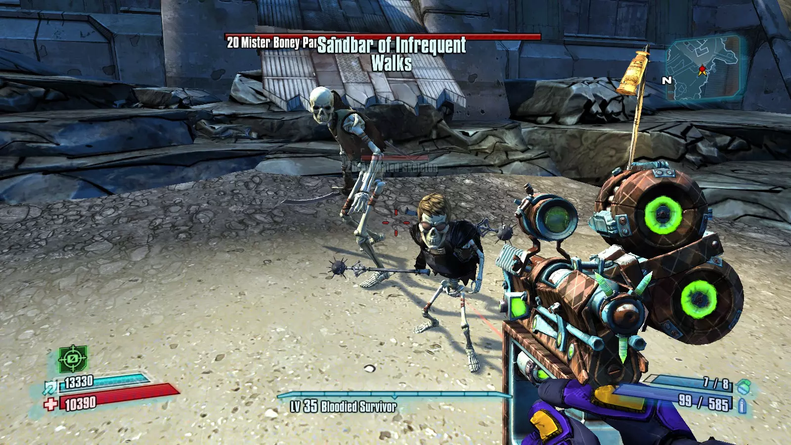 描述:这个敌人是名为“胖骨头”的骷髅。它会在普通骷髅中生成,最有可能出现在谦逊码头和无尽痛苦巢穴。遇到它可能需要一定运气,有些玩家在正常游戏过程中就能遇到,有些则需要专门刷取。我曾在普通模式的谦逊码头刷了3/4小时才完成这个成就,但后来在通关TVHM后第二次前往无尽痛苦巢穴时,正常游玩就遇到了它。 如果你需要刷取它,可以从火焰岩避难所通过地图出口点进入谦逊码头【不要使用快速旅行】,然后左转,会遇到4到5个骷髅。它可能会在这里生成,如果没有,继续前进会遇到更多骷髅。沿着这条路向上走,到达你为了任务【石头中的剑】与愤怒魔像战斗的地方。如果你还没有得到它,只需重新加载并重复操作。