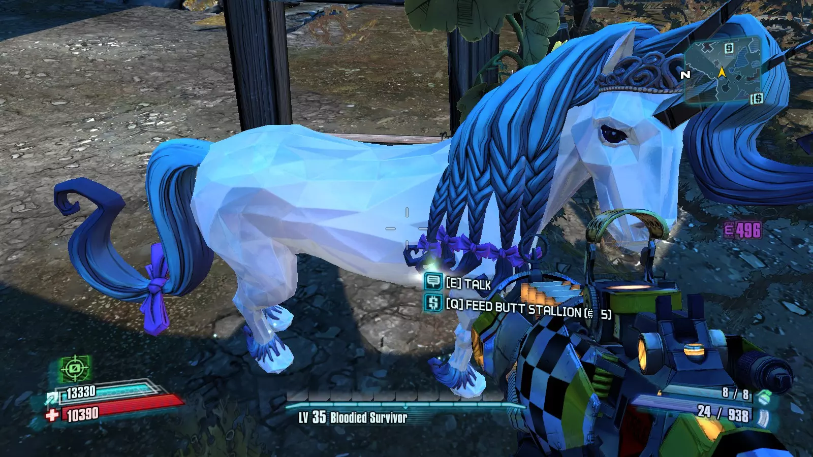 完成主线任务【游戏之戏】后,你会在火焰岩避难所的马厩里找到 Butt Stallion,以完成【抚摸 Butt Stallion】任务,在此任务中你需要近战攻击她一次。之后,对于【喂养 Butt Stallion】任务,前往她所在的位置,喂她5个铱元素。此时你可以离开马厩,之后再回来获取该成就。 如果你回来获取此成就,请确保你至少携带15个铱元素。 这次在不离开马厩的情况下再喂她3次(3×5铱元素=15铱元素),你就能获得该成就。