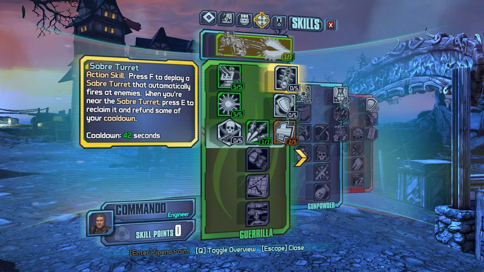 如果你以阿克斯顿(突击兵)为主角进行游戏,随着游玩进程自然就能解锁这个成就。若使用其他角色,则需在达到2级后开始部署你的炮塔并获取击杀。你也可以通过射击降低敌人生命值,再让炮塔完成最后一击来达成。我是在8级时解锁的这个成就。这是我当时的技能树加点情况……