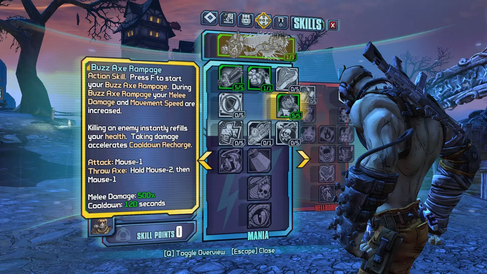 我的主角是零(刺客),所以这对我来说不是问题,但如果你不是,那么你需要升到15级以获得28个技能点,这样你才能点出【血腥】技能树的最后一个技能。连续击杀在这里很重要。