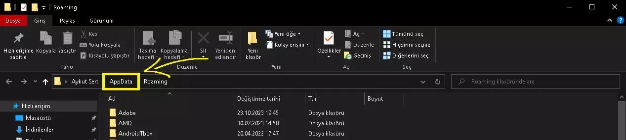 点击文件夹位置中的AppData。