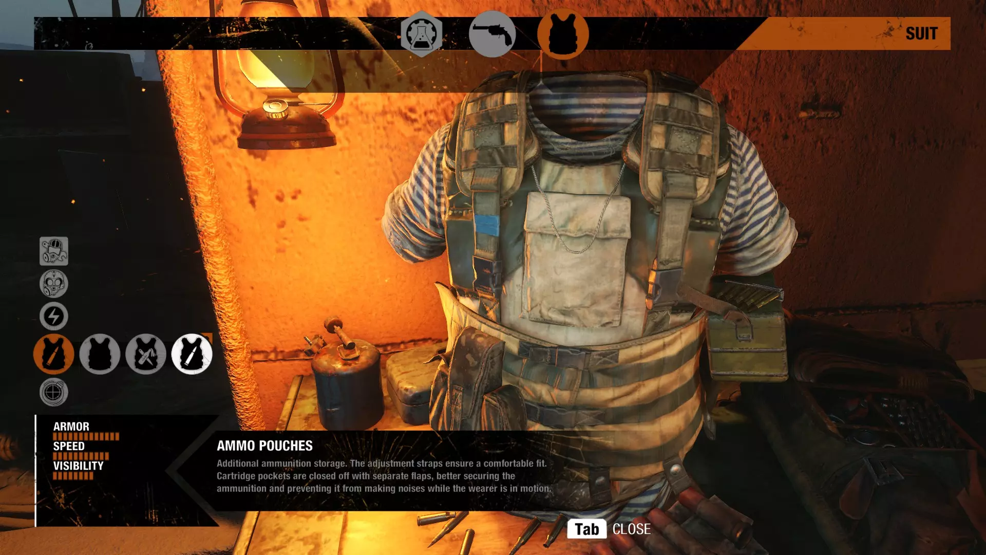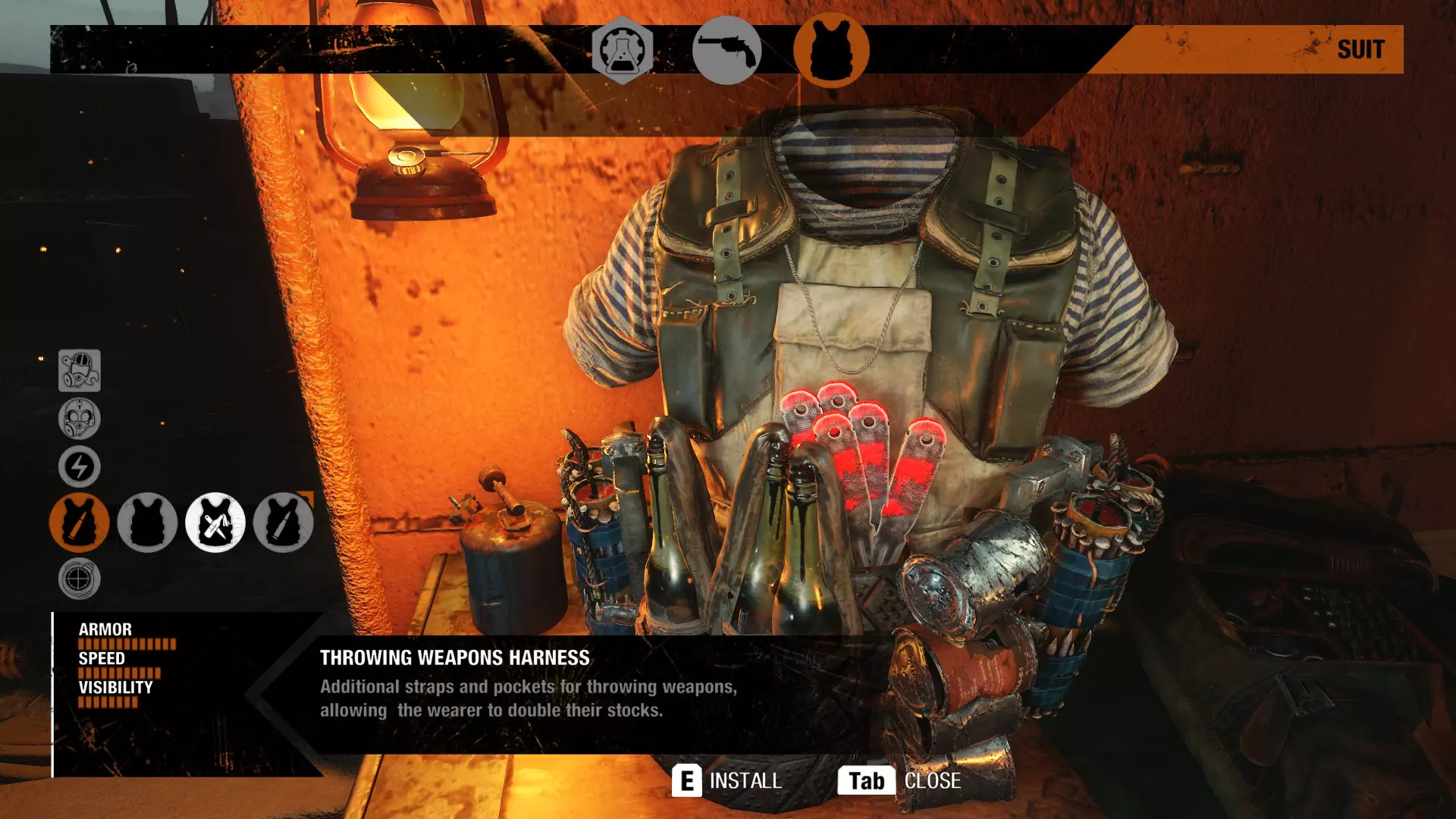地图东部有一座废弃校园。在这里你可以找到夜视仪,它就放在桌子上。借助蜡烛的光亮,你从远处就能看到它。夜视仪可以随时开关,能帮助你在黑暗区域中导航。 投掷武器背带