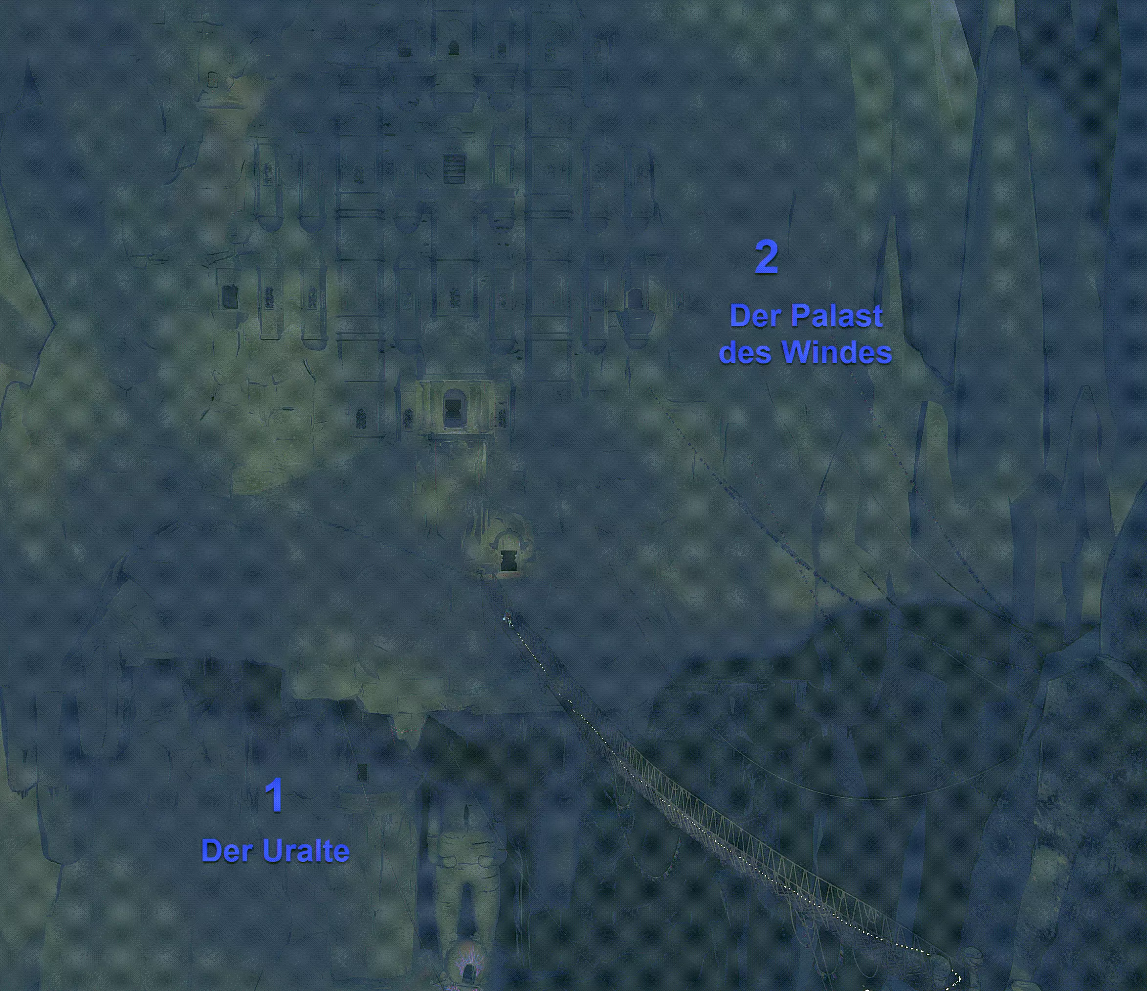 在本导游指南的第三部分,我们首先要去完成吊桥下方的“远古者”,之后在第四部分按常规继续攻略上方的“风之宫殿”。 远古者