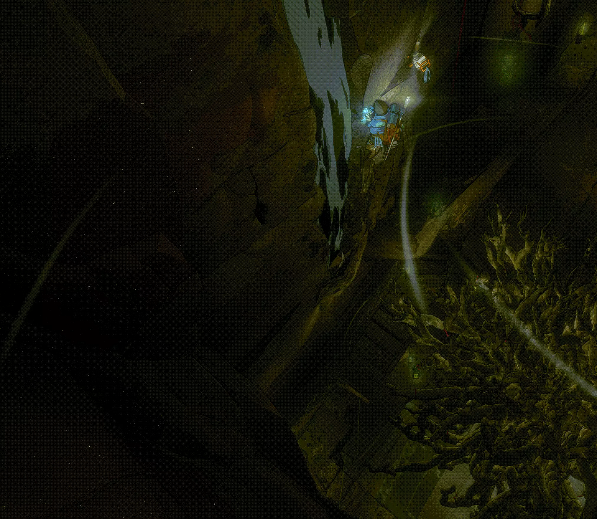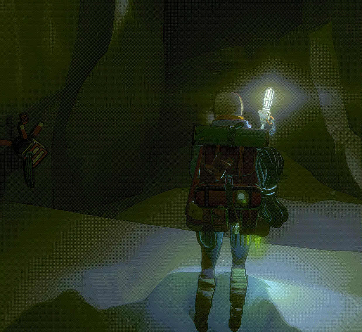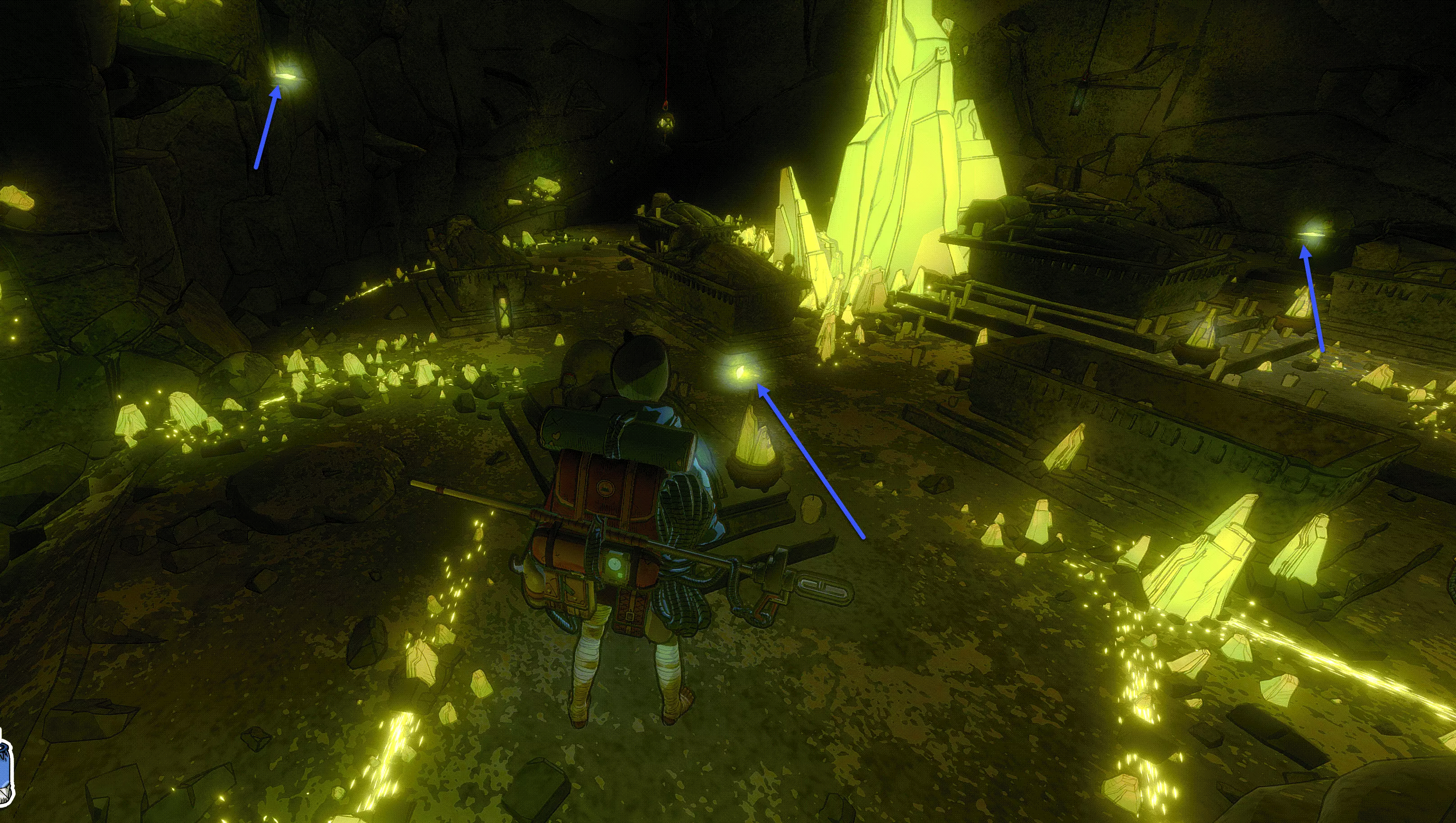 在《洞穴探险2》中,你会在“孩子”处获得第一个洞穴居民钩子。这样你就能在之前无法放置锚点的密集岩石区域拥有第一个锚点了。此外,你还会解锁成就The Child。在孩子雕像上方,你还能找到第一个玩偶部件。(游览指南第一部分)