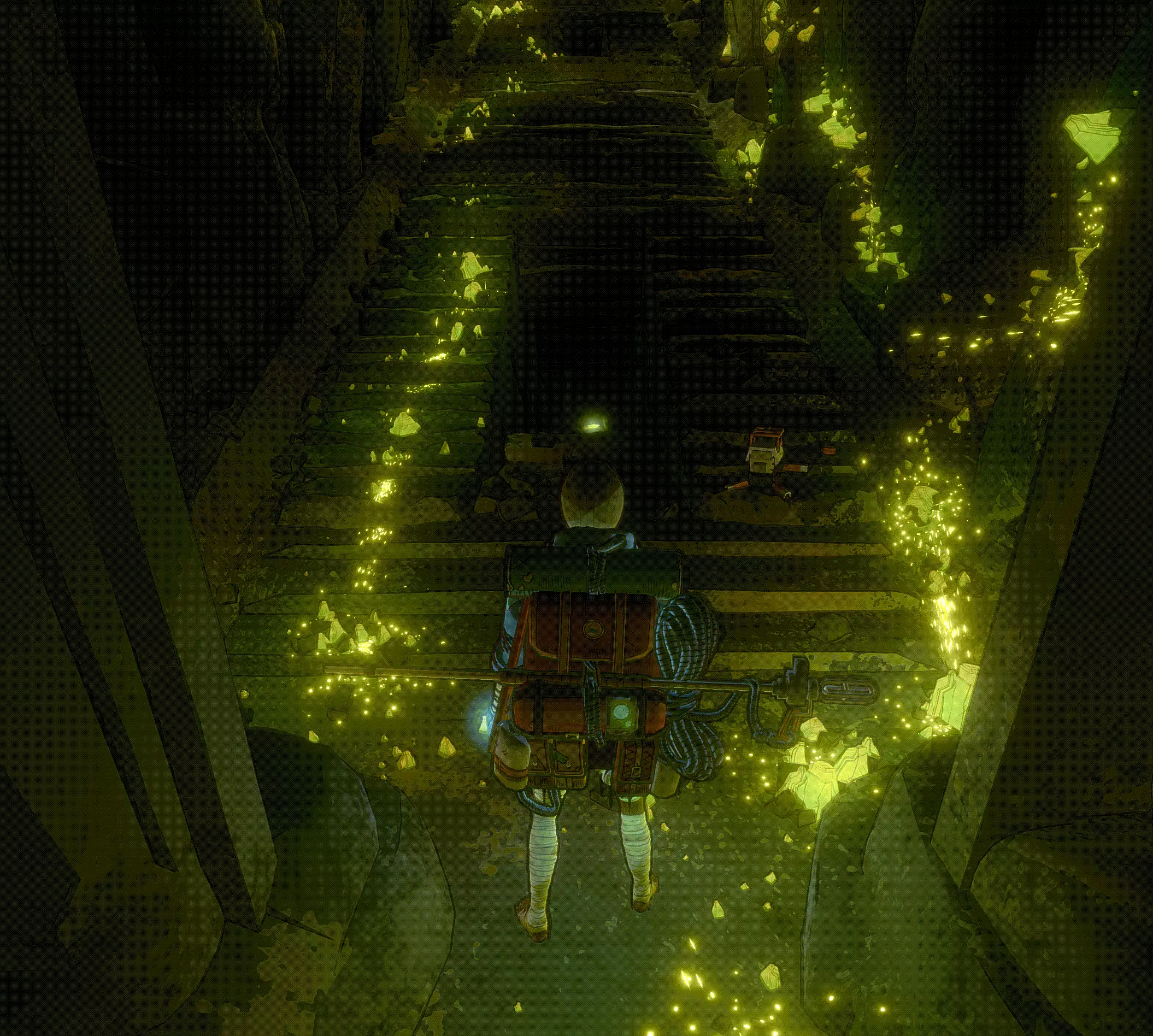 如果你们在上一轮游戏中没有太多存档,也可以通过这个破损的楼梯,让攀爬机器人(Climbot)重新收集存档。不过,只有当你们再次向下攀爬,或者在途中直接从楼梯背面向上攀爬时,这个方法才有效。