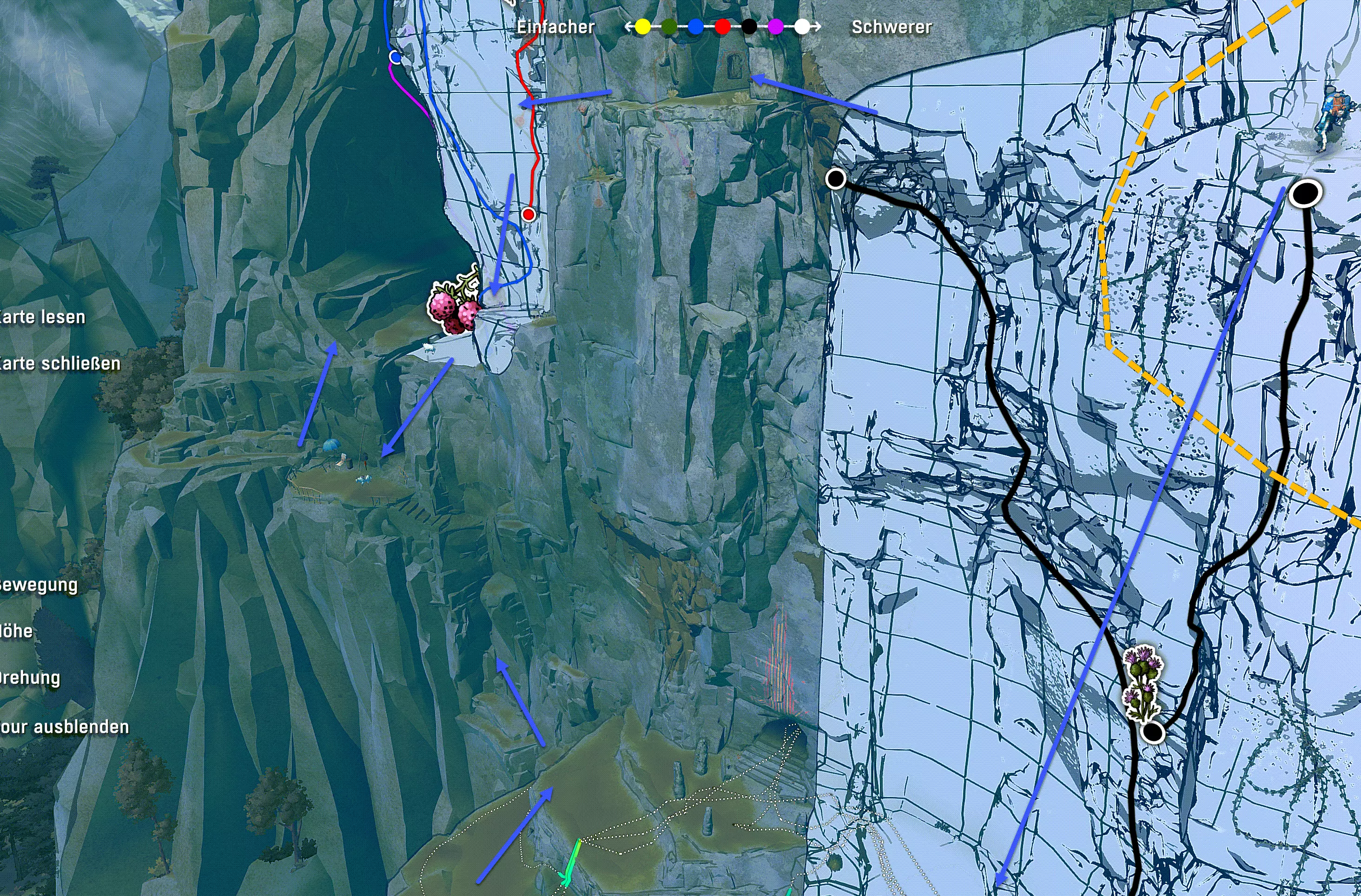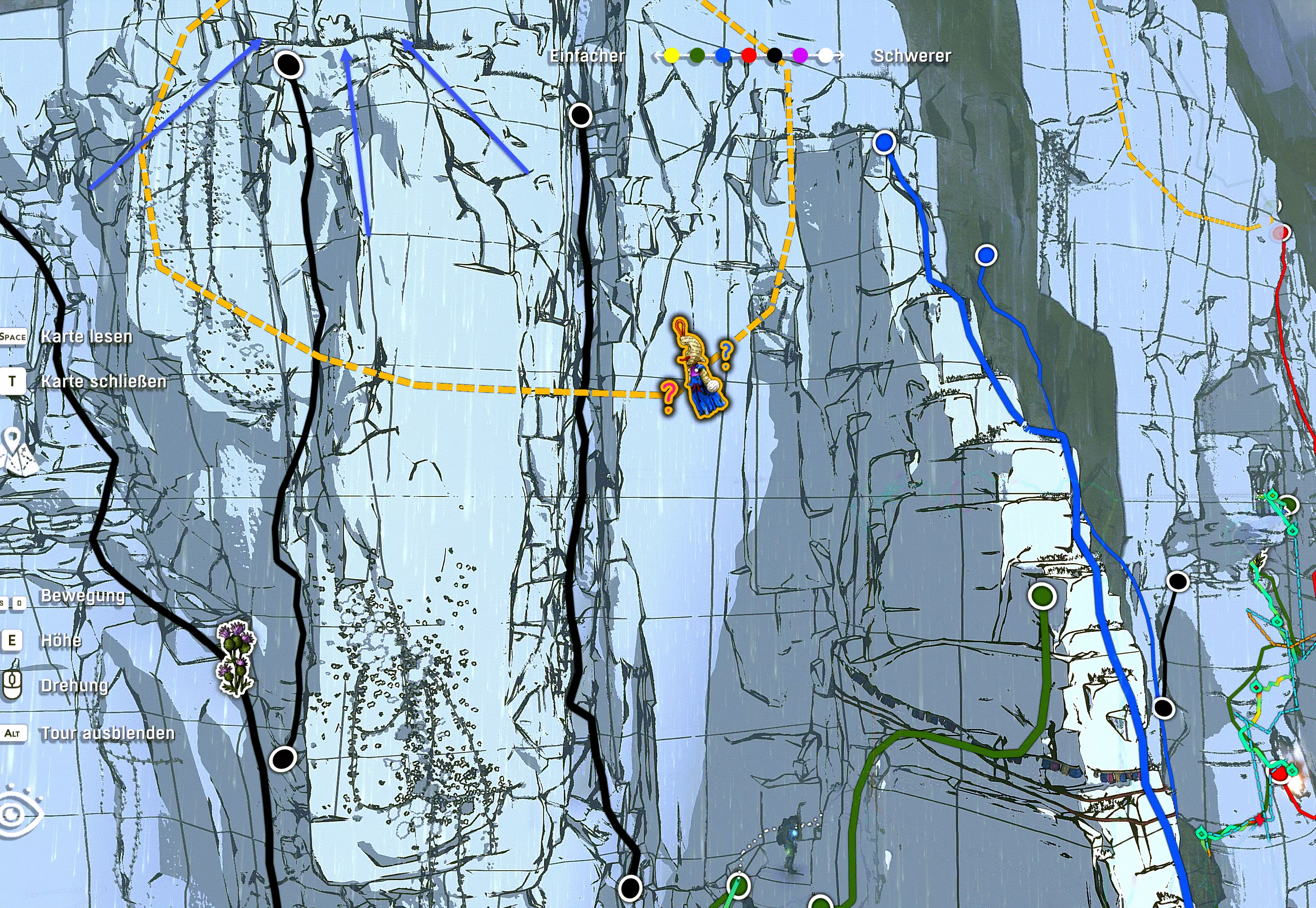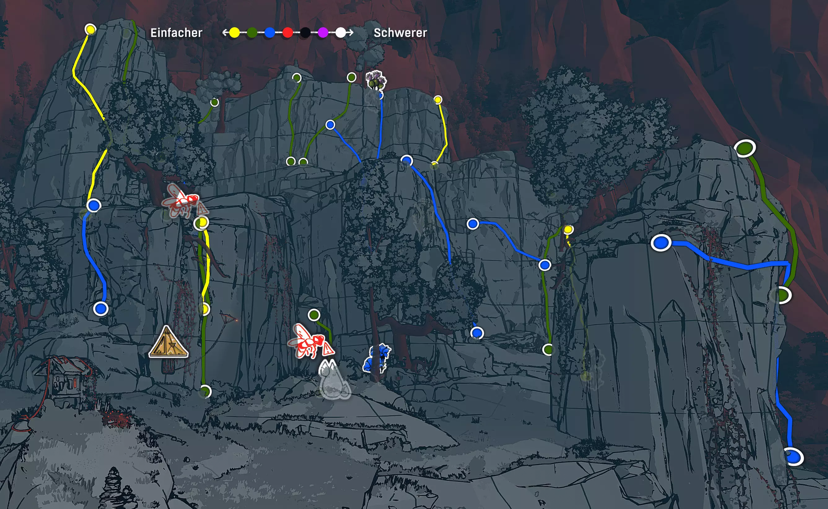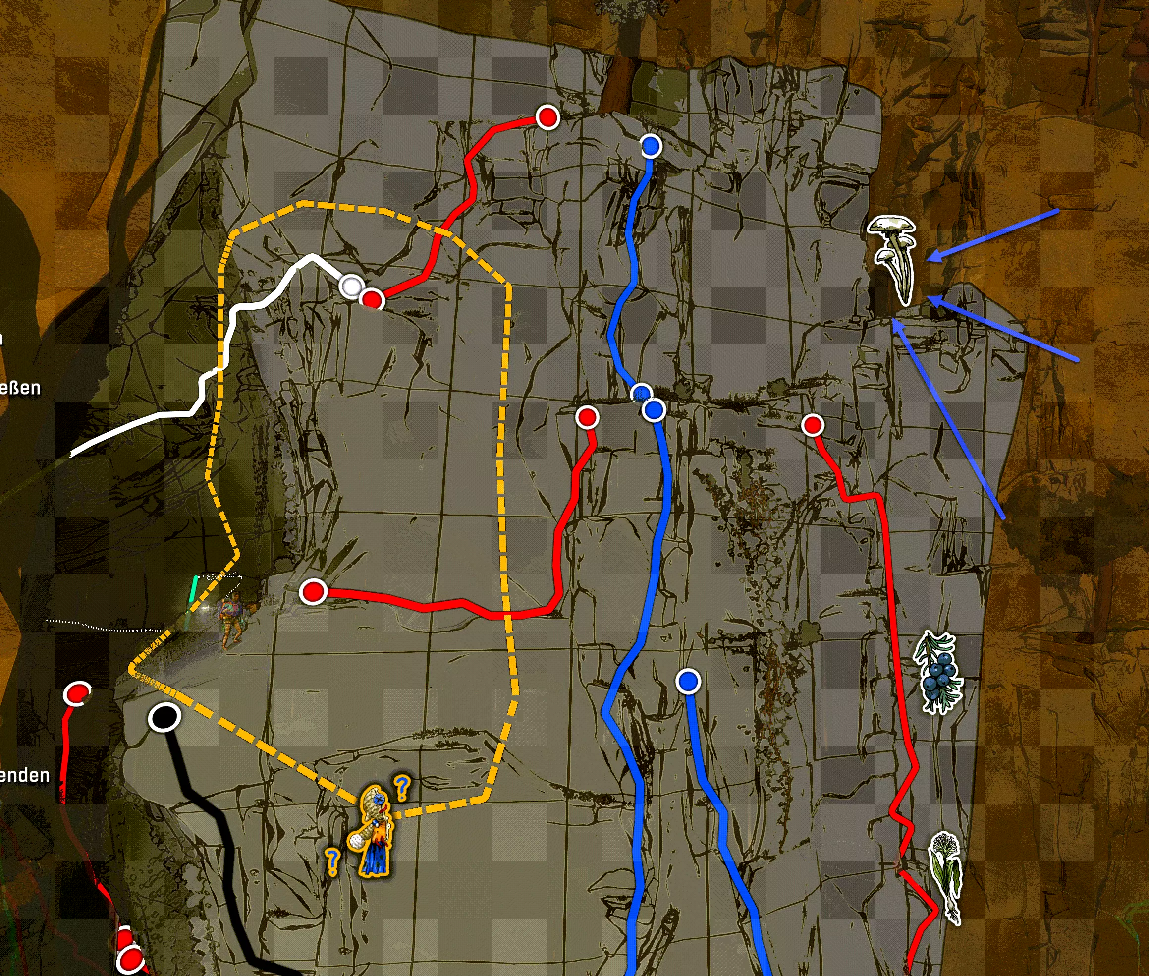 洞穴居民地图(与罗迪信件中的地点相同)——解锁攀爬路线