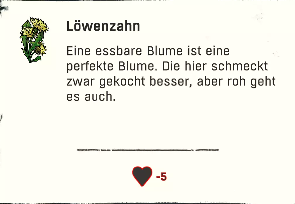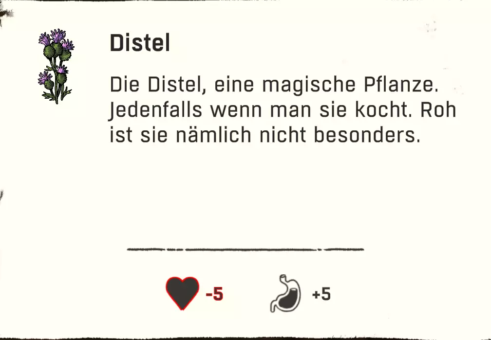 我决定接受这个挑战,经过几次尝试后终于成功了。 我们在这里扎营,我先告诉大家为什么需要第三种草药(除非你一直有好好保存)。从“村庄”开始,我们收集了三种草药:繁缕、蒲公英和荨麻。现在我们将1份荨麻和1份清水混合→煮荨麻。加入1份繁缕→强效茶。最后再加入1份蒲公英,除了获得成就外: