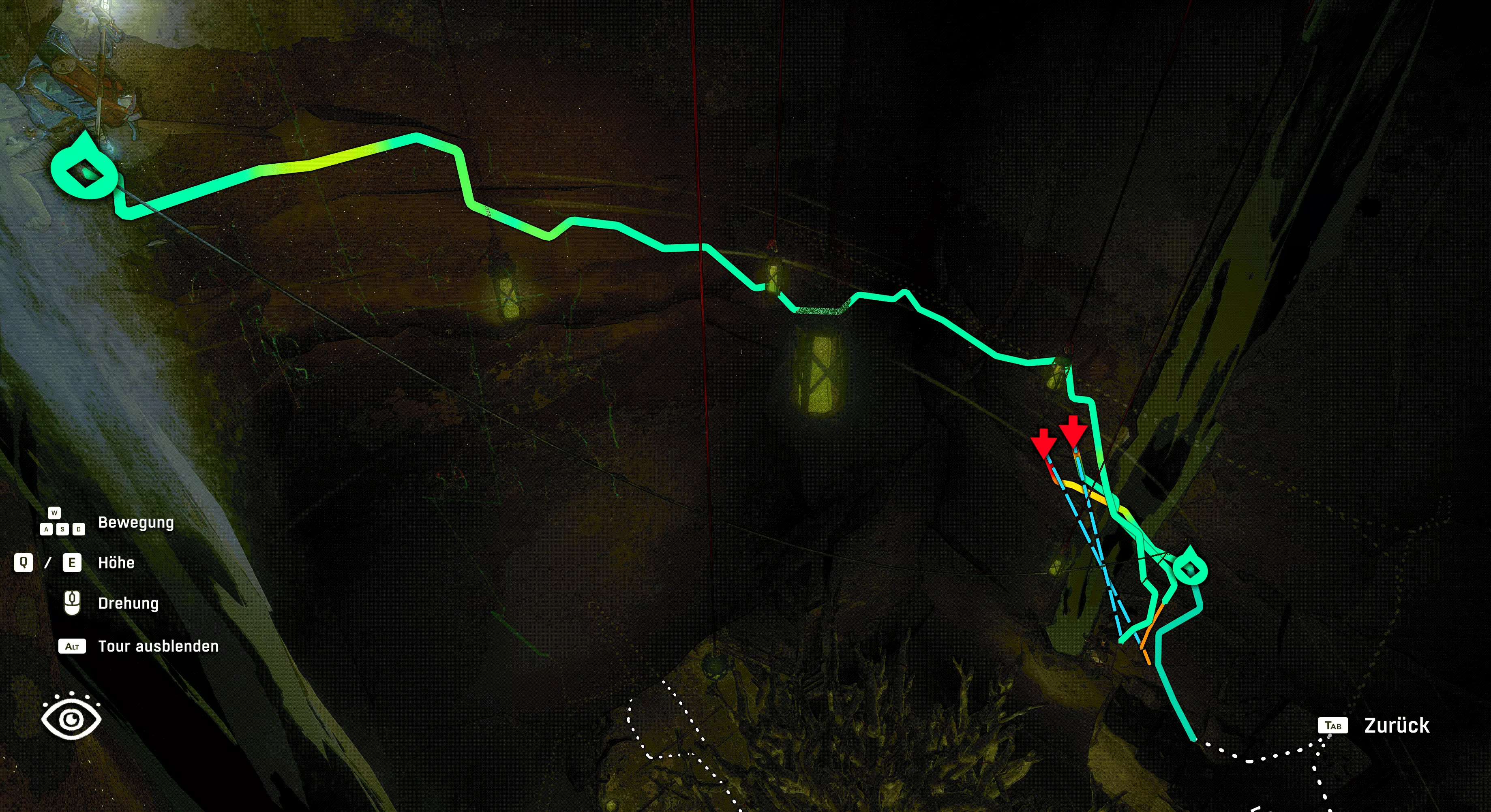 在第二步中,你们需要为下一个洞穴居民挂钩完成游戏中最大的挑战……也就是除了向前跑之外什么都不用做。顺便收集一些草药,以防你们马上要掉下去。除了现在可以在密集的岩石中安装2个安全装置(前提是你们在“孩子”(导游指南第一部分)中获得了第一个)之外,你们还将获得这个成就。