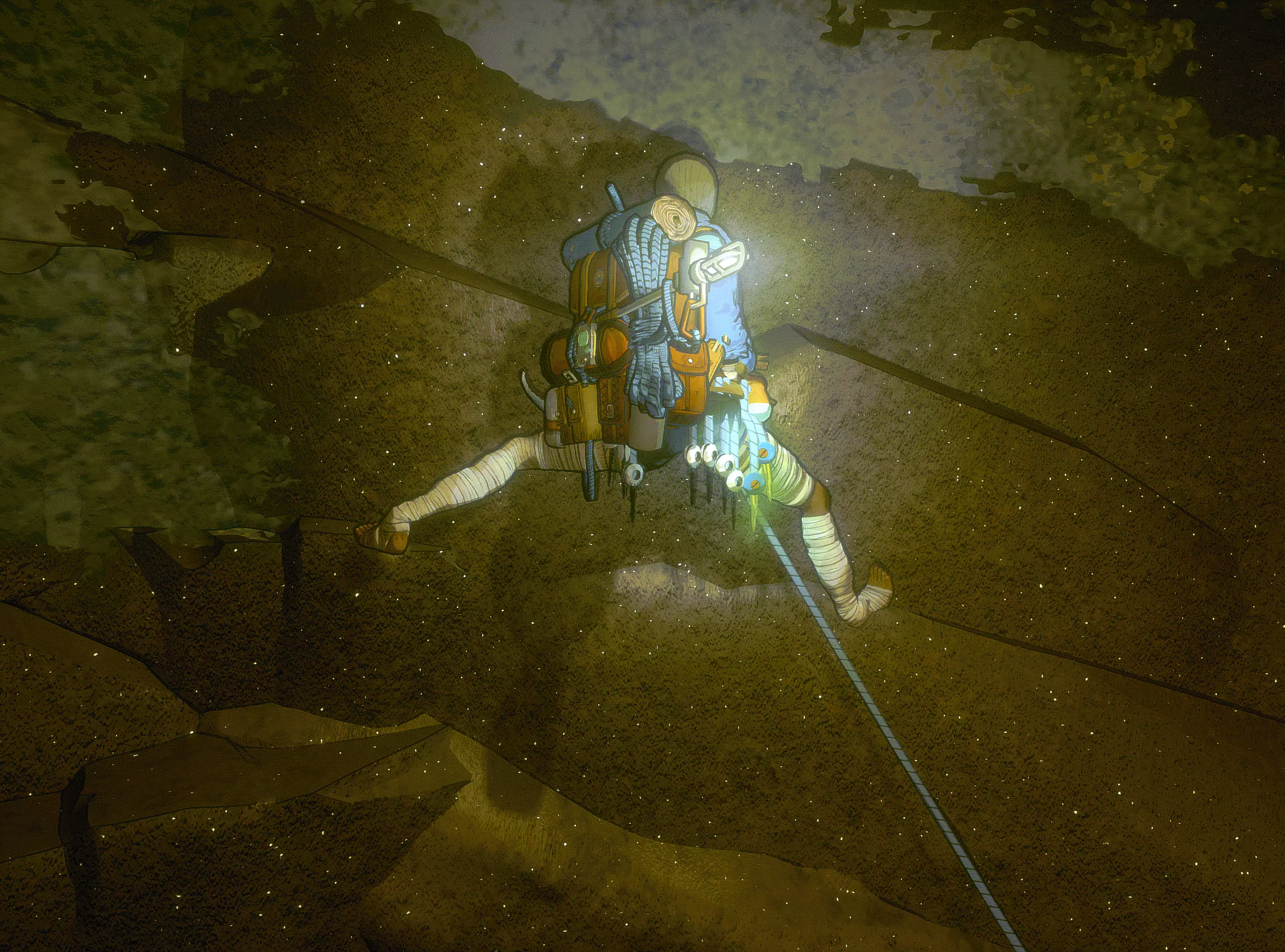 拐过一个弯,又是同样的场景。我们总是待在洞穴里,虽然里面很暗,但天气并不会影响我们的停留。而且还有不错的抓握点。真的玩得很开心。
