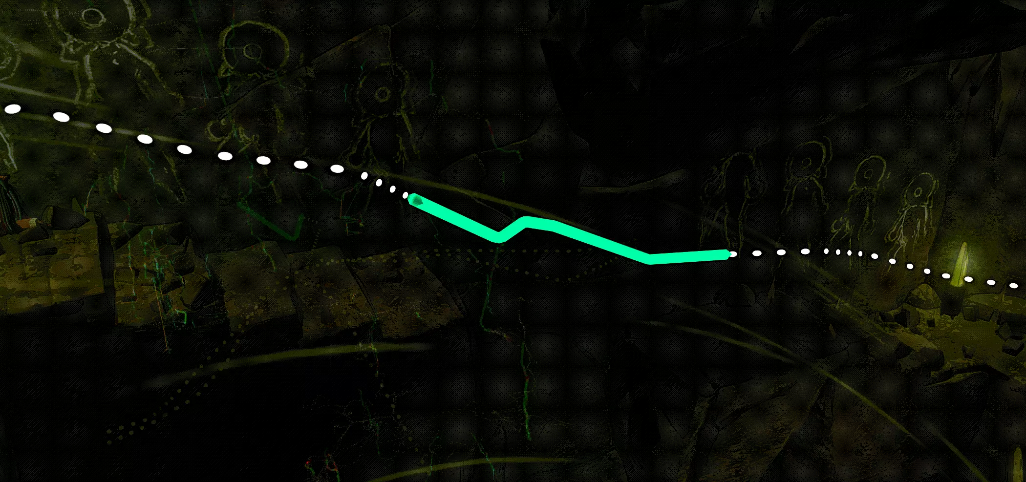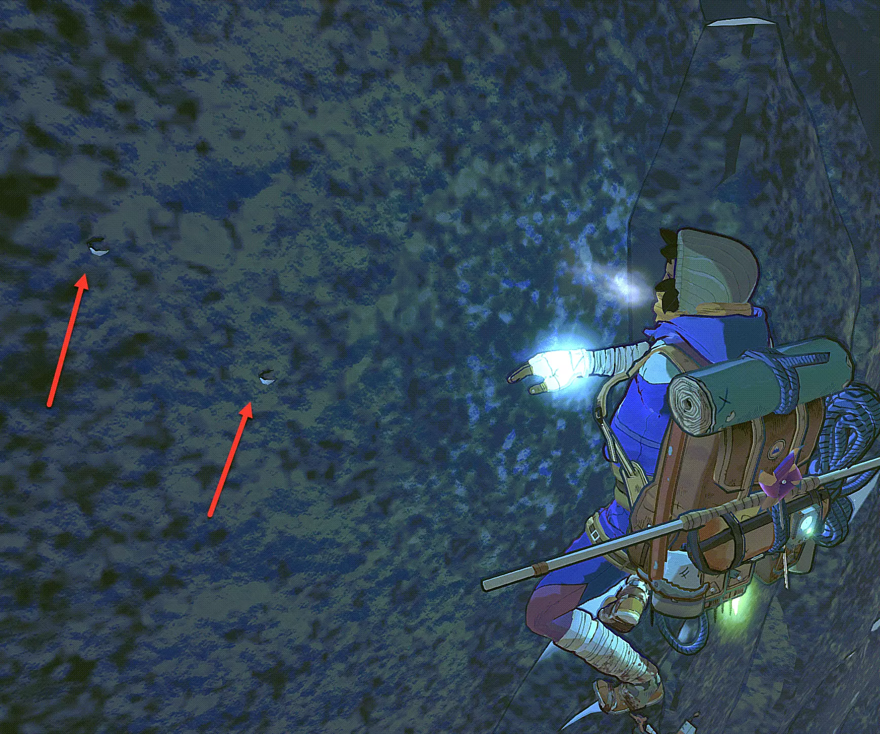 在游戏的前三分之一部分,你会在墙上发现棕褐色带闪光的沉积物。这些是致密岩石。在这里你无法安装锚点,并且总体抓地力明显下降。你可以在特定位置找到新的锚点,这些锚点将帮助你应对这种地形。