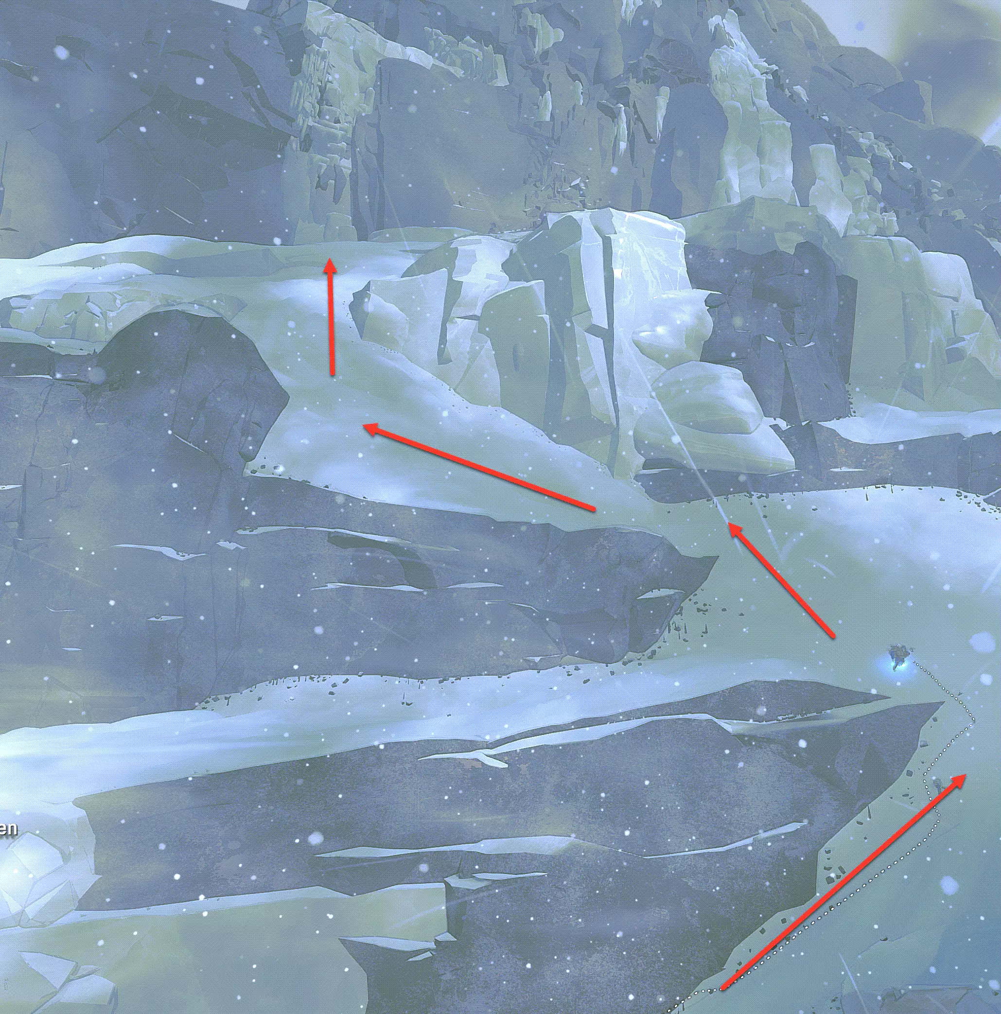 雪绒花可以在“针峰”三分之一高度的一个小海湾中获得。从那里的尸体上拿走它。(这段路程难度较大)