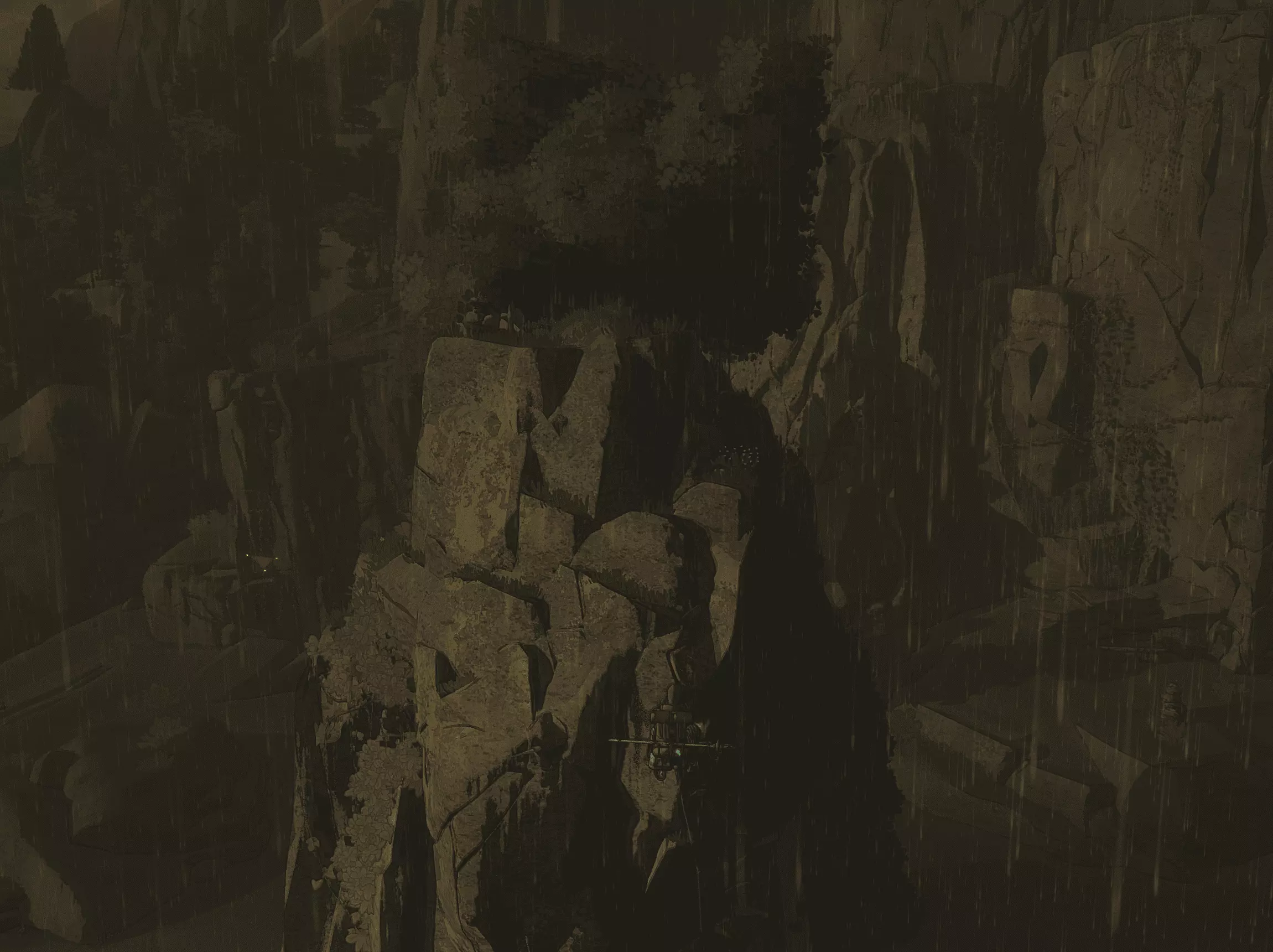 如果你们还需要零食,可以从中间的悬崖用绳索下去。不过之后总得想办法回来。我本以为不用钩子也能做到……结果摔下去了。如果你们还需要那两个成就,现在就可以去拿,因为满血状态下你们能活过这次坠落。