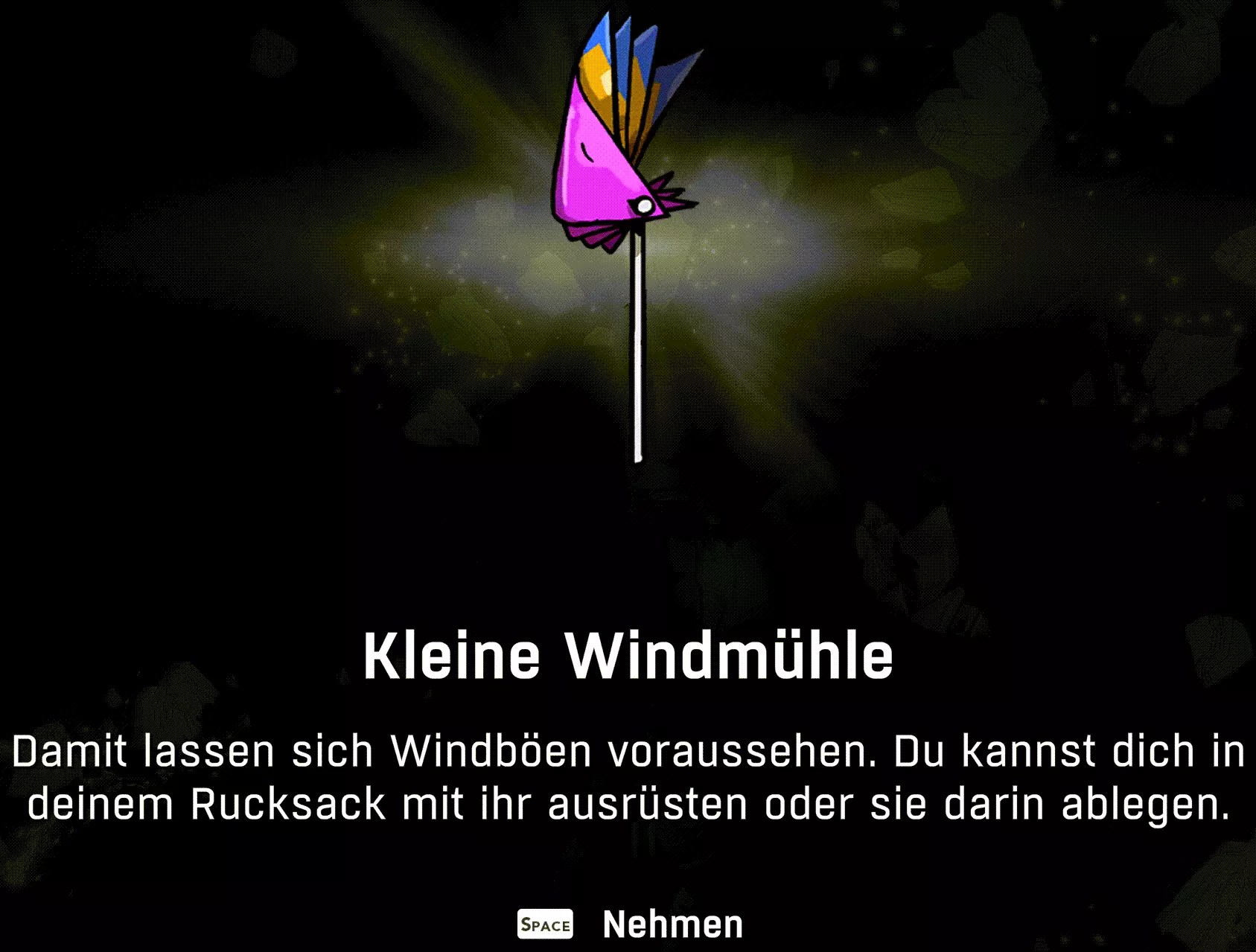 当你在水晶切割师处收集到4/5颗水晶时,将获得小风车作为奖励,并解锁成就One day, I'll be rich!。通过小风车,你可以提前看到是否有危险的阵风即将到来。(旅游指南第4部分)