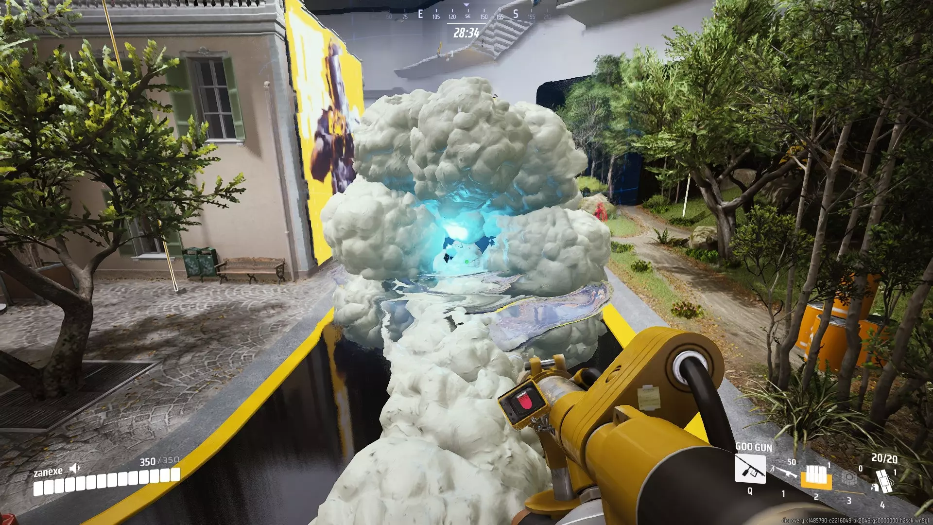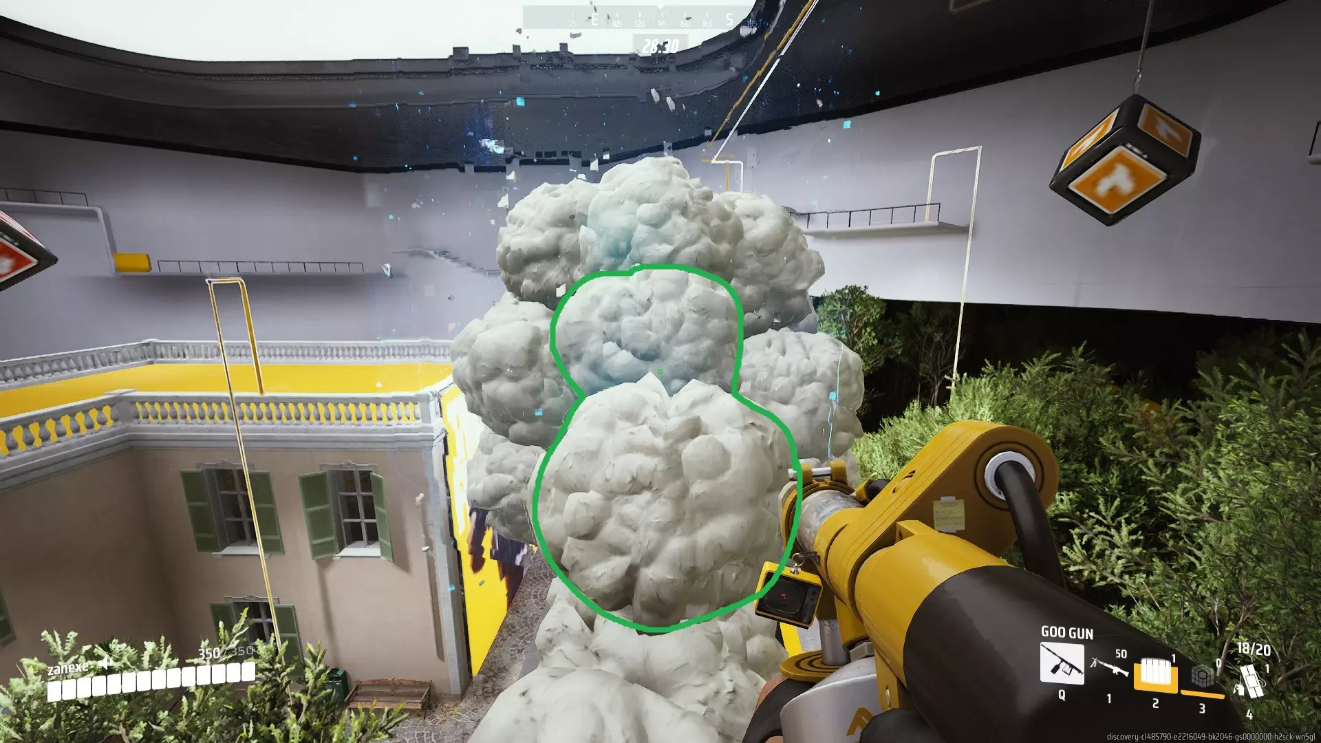 如何操作? 要让飞机直线飞行,走到你前方最近的泡沫球旁,再发射一个泡沫球,使其挡住你的角色。泡沫球会破裂,你的飞机就能直线飞行了。 (下方是第一人称视角的示例图)