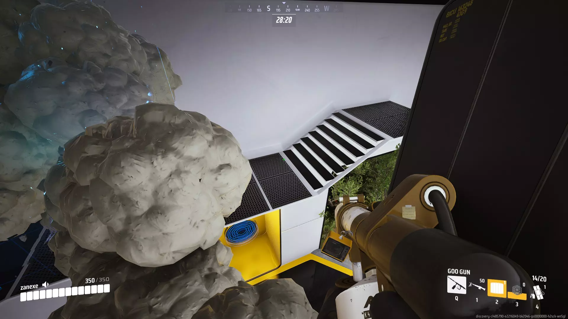 第四步 坐到飞船的驾驶位上,向发动机舱投掷反重力手雷!一旦手雷落地,就用泡沫将其封闭。