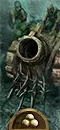 巨像死灵构造体。醉酒海盗 necromancer(死灵法师)的骄傲之作。由船骸和一堆僵尸组成的行走的科学怪人。这艘“船”不仅能用腿行走,还配备了一门毫不逊色于舰船的火炮。三次核爆的 KKK 连击不仅能轻松摧毁步兵,还能消灭任何大型怪物,甚至包括提利昂。