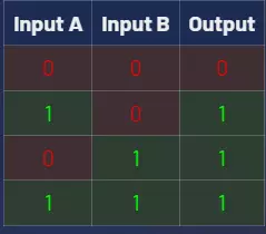 或门:任意一个输入为开启状态,可能是两个同时开启,也可能只有一个开启。当任意一个或两个输入都开启时,输出为1;当所有输入都关闭时,输出为0。