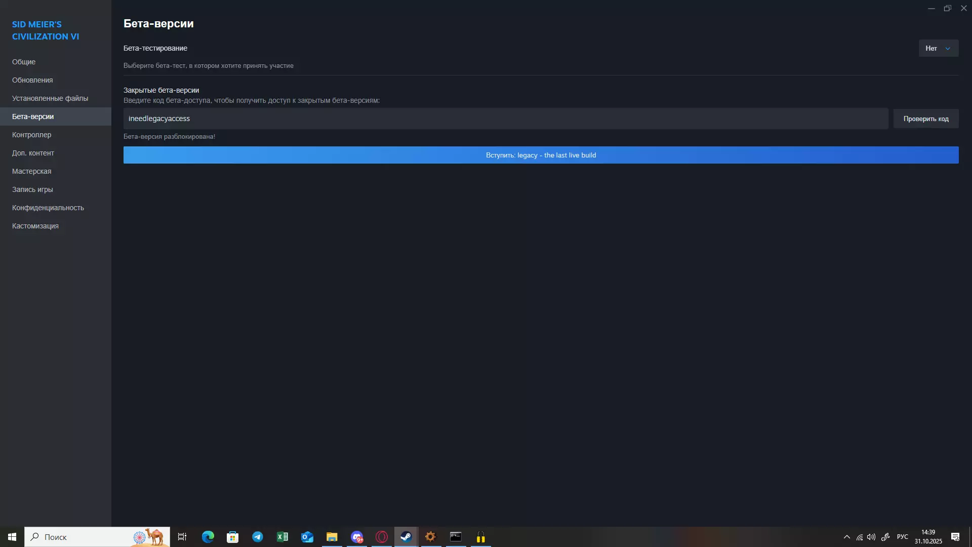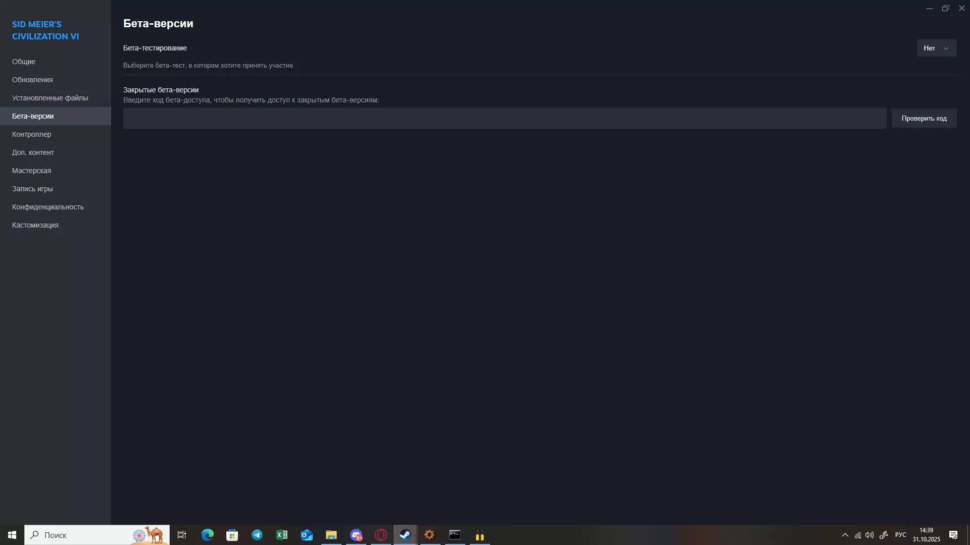 原因 可能是RKN(俄罗斯联邦通信、信息技术与大众传媒监督局)或Windows 10的问题,这是我了解到的原因。 如果你还知道其他原因,请在评论中告诉我,我会补充进去。 游戏修复方法 如何解决该问题? 首先打开《文明》系列游戏在Steam中的页面,点击右侧的齿轮图标【管理】,然后打开【属性】选项卡并选择【测试版】。