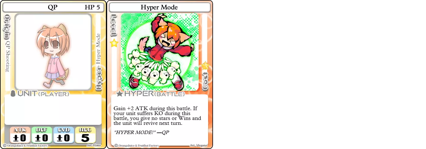 “奖励我一些布丁吧!” 难度:★★★☆☆ 职业:全才 标签:克制/爆发 优点:极其多才多艺,超必杀兼具防御和进攻用途 缺点:可能过于全能(没有特别突出的优势),依赖卡牌 如果这段描述听起来像全才职业的说明,那是因为QP正是全才的完美定义。她的基础属性是所有其他角色的平衡基准。虽然这让她难以应对更专精的角色,但她可以通过使用合适的卡牌利用对方弱点,扭转任何战局。QP几乎能让任何卡牌在合适的情况下发挥作用。超级模式完美体现了这一点,它既是进攻强化,也是防御后备。 《疾旋战姬极速对决》