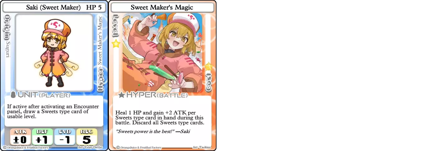 “呼呼,我是甜蜜造物主,甜蜜诸神的领袖。” 难度:★★☆☆☆ 职业:多面手 标签:收集者/陷阱师/控制者 优势:出色的卡牌控制和星星生成能力 劣势:卡组构筑选择有限,缺乏进攻手段 甜蜜诸神的领袖并非能独自留在战场上的单位。甜蜜造物主仅通过其他角色使用甜蜜卡牌或踩中甜蜜陷阱就能被动生成星星。像咲的曲奇、布丁和危险布丁这类常见卡牌,无论谁使用,都会让她离胜利更近一步。不过,她对甜蜜卡牌的依赖会限制其卡组构筑选择,迫使她在低影响力的甜蜜卡牌和其他实用卡牌之间做出抉择。这往往导致她在追赶其他角色或被击倒后恢复时,可使用的手段寥寥无几。 咲(甜点制作师)