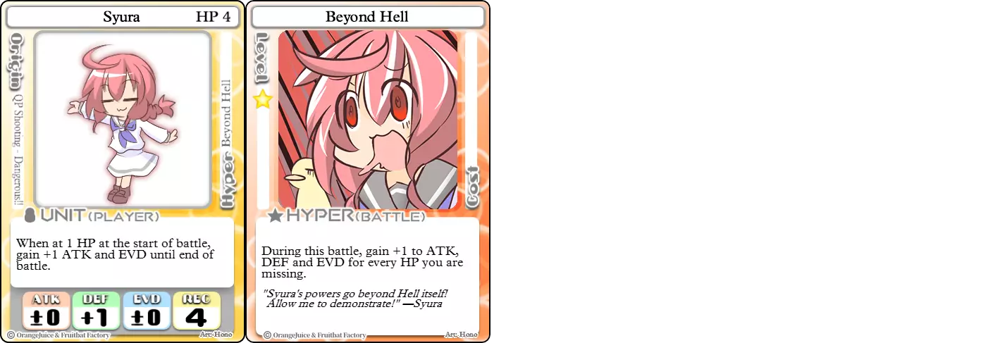 “阿巴巴巴巴巴啊啊啊!” 难度:★☆☆☆☆ 职业:全才 标签:爆发 优势:防御属性优秀,超必杀技可以诱敌并扭转战局 劣势:没有战斗卡片时攻击力低,满血时超必杀技无效 修拉是一名平衡型角色,在陷入绝境时能爆发出强大威力。除了在1点生命值时获得攻击和闪避加成外,修拉的超必杀技【超越地狱】会根据她损失的生命值,为所有战斗属性提供加成。这使她在低生命值时极为强大,但如果无法恢复生命值且耗尽战斗卡片来提升属性,她也会变得非常脆弱。因此,修拉是学习管理卡片使用和生命值的理想角色。 奈奈子