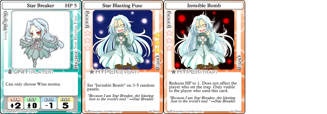 “呵呵呵,想和我一起发动一场战争吗?” 难度:★★★★☆ 职业:格斗家 标签:星燃/陷阱师 优势:属性高于平均水平,可肆意消耗星星 劣势:无星星 normas,被大型地图和策略性玩法严重克制 星之破坏者是一名摒弃了进攻型角色优势的进攻型角色。虽然她看似强大且简单直接,但由于自身的缺点,想要用她赢得游戏可能非常困难。她极强的战斗属性让遭遇战变得轻松,并使她在面对闪避型和中立型角色时占据优势。甚至连坦克型角色也不得不忌惮她的HYPER技能。【星爆引信】会埋设隐形炸弹,能将对手生命值降至1点,这让坦克型角色变得极度脆弱。尽管拥有自身优势,但“星之破坏者”因被锁定在胜利规则中而成为一个非常弱势的角色。地图上遭遇面板和 Boss 遭遇战较少时,她会因难以获取胜利而举步维艰。不过,她最大的克制因素是明智的玩法。“星之破坏者”能轻松击败毫无准备的对手,但熟练的玩家知道如何有效让她失去作用。这使她获得了“虐菜角色”的名声,在较高水平的对局中表现很差。 甜蜜破坏者