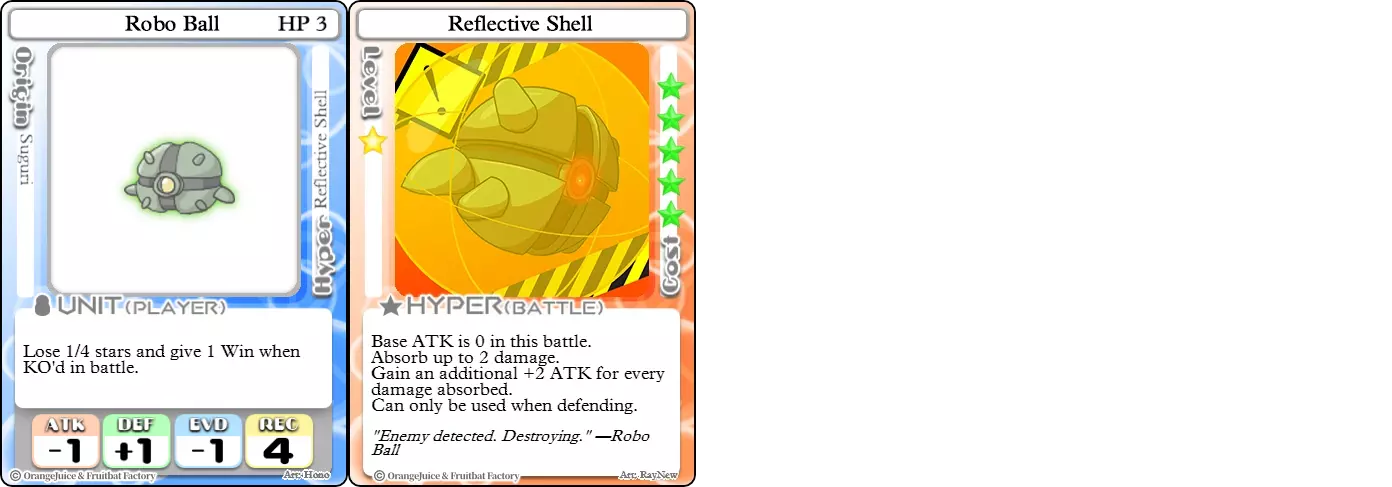 难度:★★★☆☆ 职业:和平主义者 标签:生存 优点:被击倒时给予较少星星并获胜,【Hyper】技能能扭转被攻击的局势 缺点:属性极低,高度依赖【Hyper】技能,翻盘潜力极低 机器人球的防御属性、减少损失的被动技能以及【Hyper】技能使其一旦取得优势就难以被击败。【反射外壳】能在受到攻击时保护机器人球,甚至能让它进行反击击倒对手。即使被击倒,机器人球也只会给予较少的星星并以击倒获胜。然而,机器人球自身很难击败对手。【反射外壳】只能在防御时使用,且由于其极低的生命值和攻击力,使用进攻卡牌非常危险。因此,如果对手领先或机器人球在星星数量上落后,机器人球很难追赶上。海鸥