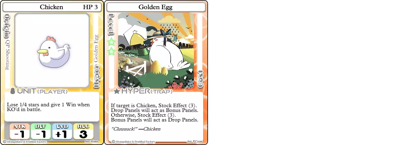 难度:★★★★☆ 职业:和平主义者 标签:收集者/陷阱师/控制 优势:可操控星星获取,击倒敌人时获得的胜利次数和星星较少 劣势:攻击能力差,非常脆弱,陷阱类爆发技能不稳定 小鸡是游戏中最无助的角色之一。由于攻防能力低下,小鸡在战斗中很容易被击倒,且难以进行有效反抗。小鸡在任何战斗中能遇到的最佳情况,就是幸运闪避后通过最近的传送面板逃脱。尽管脆弱,小鸡还是有一些能扭转局势的手段。当处于单独状态时,得益于被击倒时星星损失减少以及其爆发技能的积极效果,小鸡收集星星的速度比许多其他角色都要快。金蛋能有效将掉落面板转化为奖励面板,进一步减少小鸡在对战中损失的星星数量。金蛋还可用于阻碍收集星星的对手,让他们的奖励面板变为掉落面板。小鸡甚至能使用一些特殊的防御和进攻卡片,例如反转属性领域或加速超卡,这些卡片对其他角色而言可能过于危险或毫无帮助。 机械球