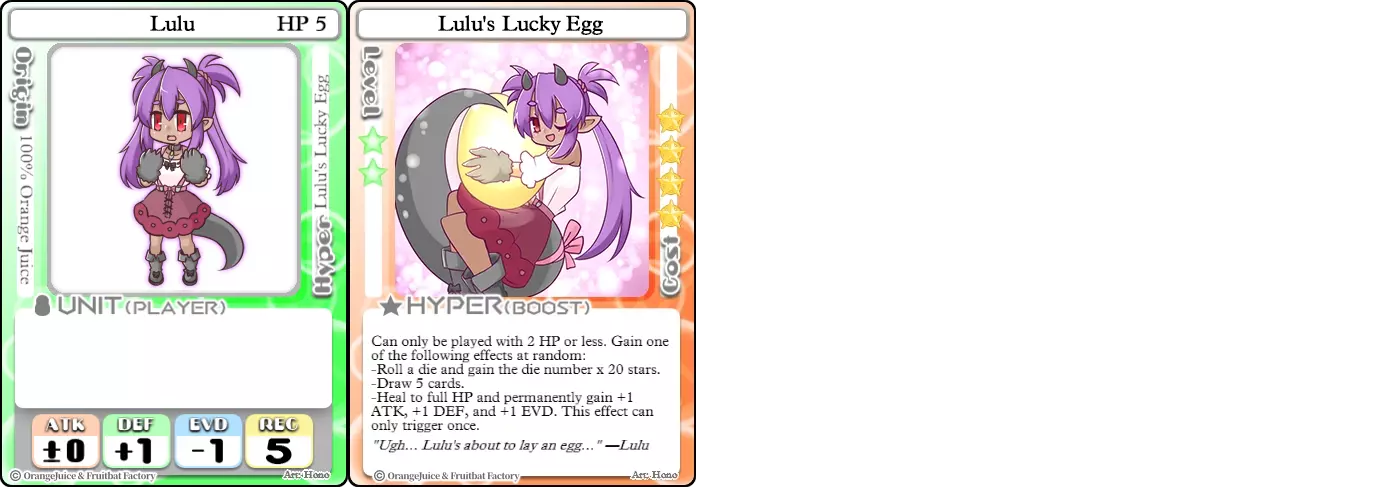 “呀哇,你想对露露做什么?!” 难度:★★★☆☆ 职业:坦克 标签:构筑/生存/收集者/卡牌优势 优点:属性优秀,奥义拥有极其强大的效果 缺点:奥义消耗极高,可能因抽牌或星星点数掷出过低而落空 露露是适合想要稳健游玩但仍能承担风险的玩家的坦克角色。她的属性面板因+1防御而具备良好的生存能力,但并不适合进行过多战斗。她的技能核心是奥义【露露的幸运蛋】,这是一个消耗40星星的赌博,能随机获得三种强力效果之一:20倍奖励骰、抽五张牌,或完全恢复生命值并永久提升1点攻击、防御和闪避。这个增益效果能让她的属性达到满状态娜丝(Nath)的水平,要是她成功触发这个效果,就会变得非常难以击败。不过,使用这张卡牌并非没有风险,因为它只能在2点生命值时使用,有着极高的星级消耗,而且还受随机数生成(RNG)的影响。 艾丽希安龙(Alicianrone)