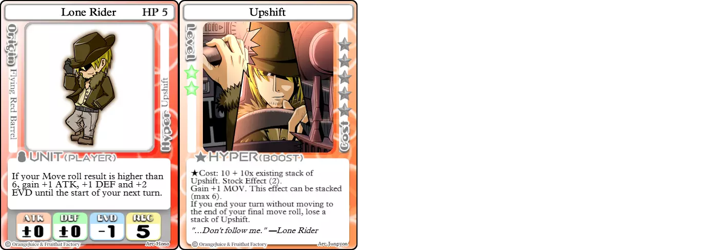 “小心别变成马路杀手。” 难度:★★★☆☆ 职业:暴徒 标签:机动性/增益 优势:从移动卡片中获得极高收益,基础属性优秀且能进一步强化,速度快 劣势:需要增益或卡片提升属性,停止移动会减少增速层数 不出所料,独行骑手是个追求速度的角色。每当他的移动骰掷出6或更高时,他的所有战斗属性将在下次行动前+1。借助冲刺!等移动卡片和他的奥义,这个极强的属性加成很容易达成。增速效果能让独行骑手获得半永久的+2移动力,只需消耗少量星星就能将移动力堆叠至最高+6。但因达成目标、战斗、完成悬赏等情况停止移动时,他会损失速度加成的层数。虽然这确实让他在维持速度方面对卡牌有一定依赖,但即便在短时间爆发中,他依然是不容小觑的存在。 姬(月光)