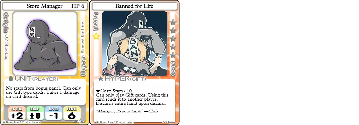 难度:★★★☆☆ 职业:刺客 标签:收割/机动性 优点:【Hyper】技能在收割方面表现出色,被击倒时损失的星星更少且更容易获胜 缺点:游戏中最脆弱的单位 海鸥是玻璃大炮中最脆弱的存在。它仅有3点生命值,且两项防御属性均为负值,因此很容易被击败。相反,海鸥依靠自杀式袭击和利用其【Hyper】技能进行针对性收割来取得优势。得益于所有NPC共有的星星保留被动,海鸥在被击倒时不会损失太多星星。这有助于支持其自杀式攻击倾向,并且如果它成功取得领先,会变得异常难以被击败。这也使得携带强力进攻型卡片的风险大大降低,因为即使不使用这些卡片攻击海鸥,它也很可能会死亡。 商店经理