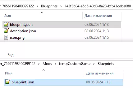 2.2. 复制蓝图:打开蓝图所在文件夹,将“blueprint.json”复制到“...Mods[用户游戏名称]Blueprints”路径下。