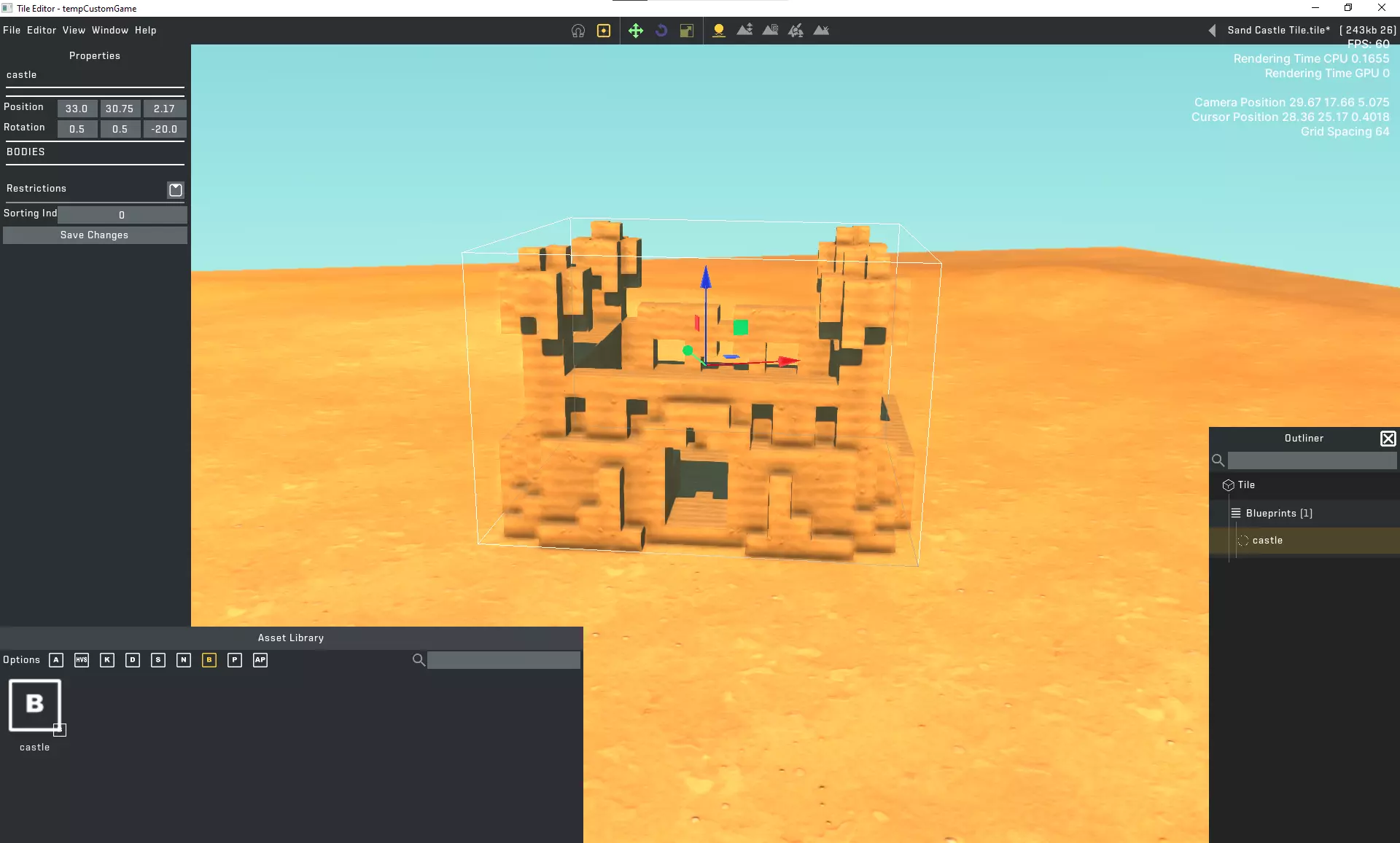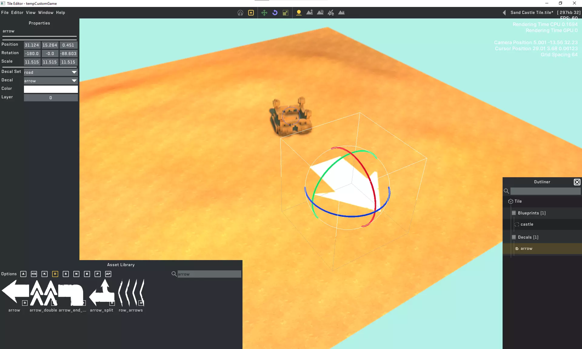3.6. 瓦片旋转(可选) 在世界编辑器(World Builder)中,瓦片上不显示图纸。如果没有可用于确定瓦片旋转方向的参考物,您可以绘制/创建一个标记。完成本指南并在游戏内的世界编辑器(World Editor,非Mod Tool)中创建世界后,请在Mod Tool瓦片编辑器(Mod Tool Tile Editor)中移除该标记并重新保存瓦片。