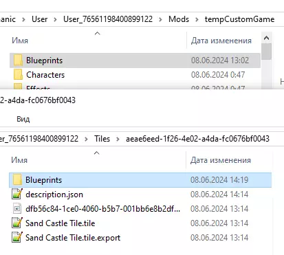 1.6. 将用户游戏的UUID更改为 tiles UUID 您的用户游戏位于路径“C: Users [用户名] AppData Roaming Axolot Games Scrap Mechanic User User_[您的SteamID] Mods [用户游戏名称]”。您也可以在Mod Tool的文件窗口中打开它:文件 > 打开文件夹。