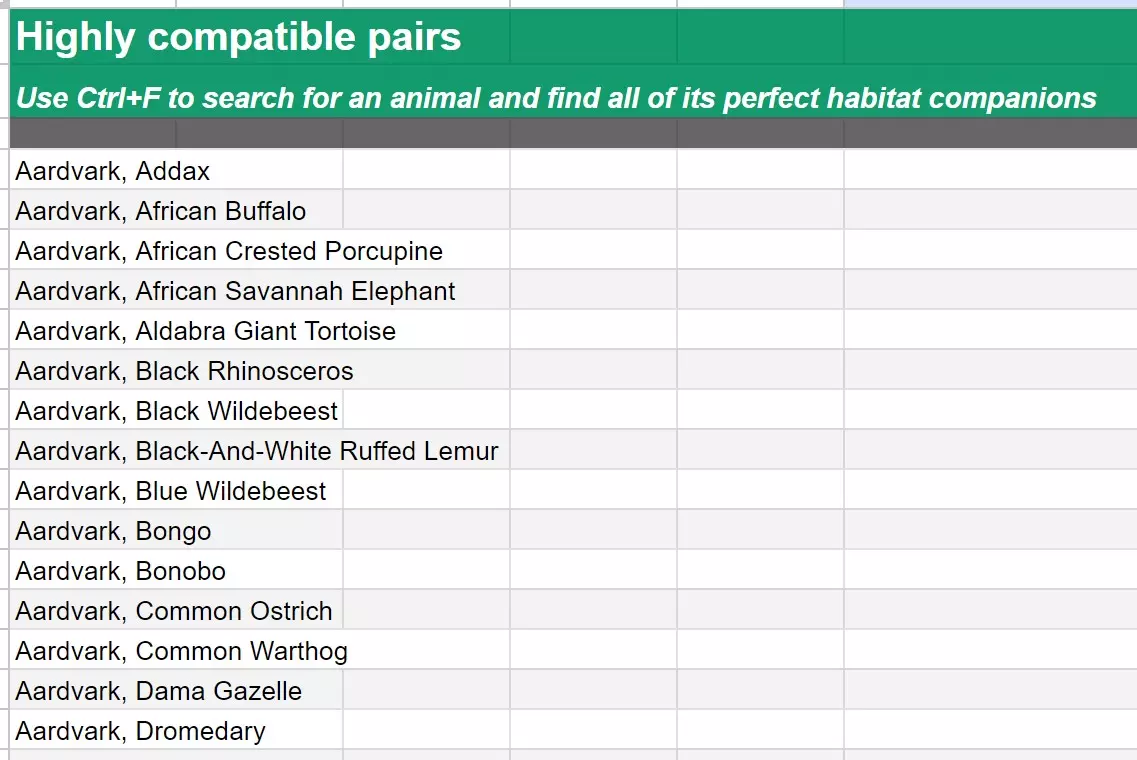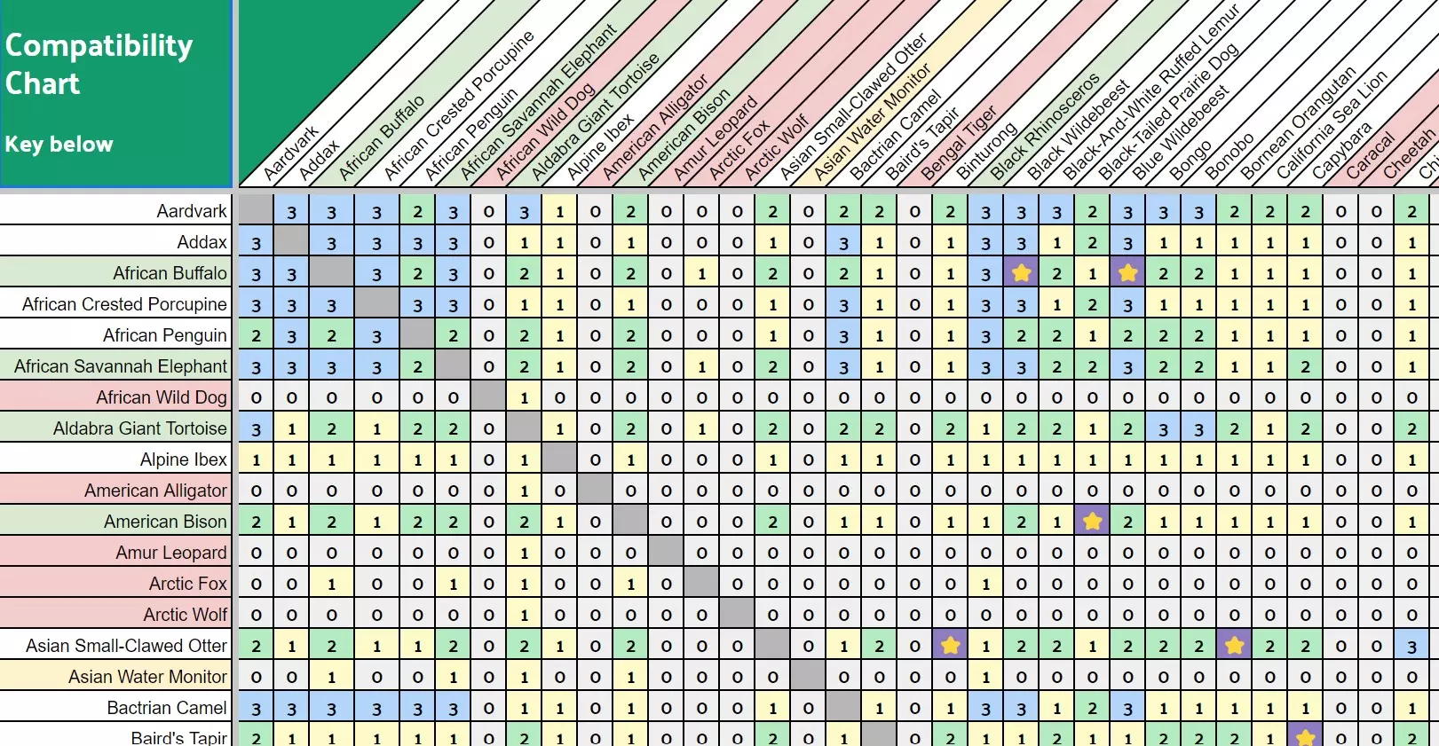 为确保兼容性,我已纳入能够和谐共处的动物,即便它们之间没有跨物种加成。除了兼容性图表外,还有一份便于搜索特定物种的兼容性列表。