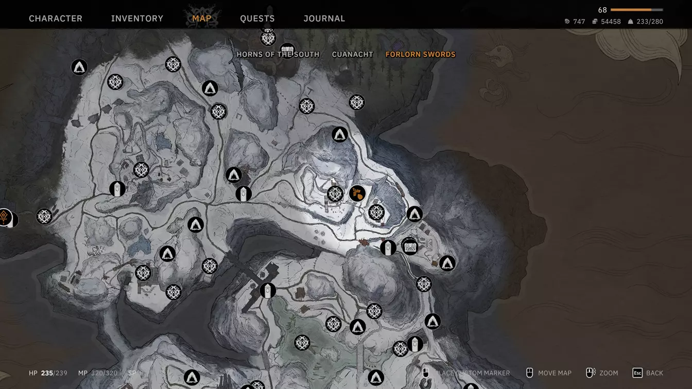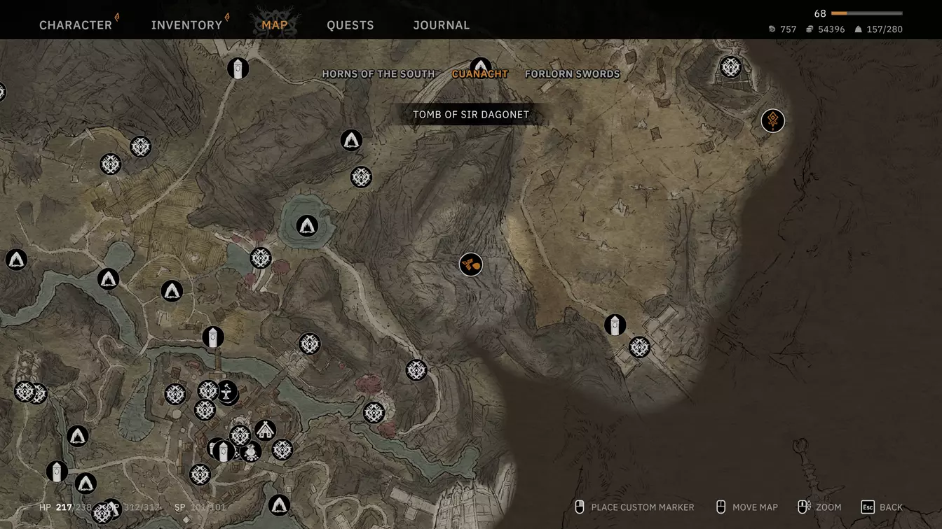 【古墓1】 获取王者之剑后,你可以打开游戏开始位置附近的这座古墓。完成墓内任务并离开后,你会遇到一名皮克特女性,她会在你推进游戏进程时提供信息,并且在你清理完所有古墓后,会给出结局所需的最终信息。