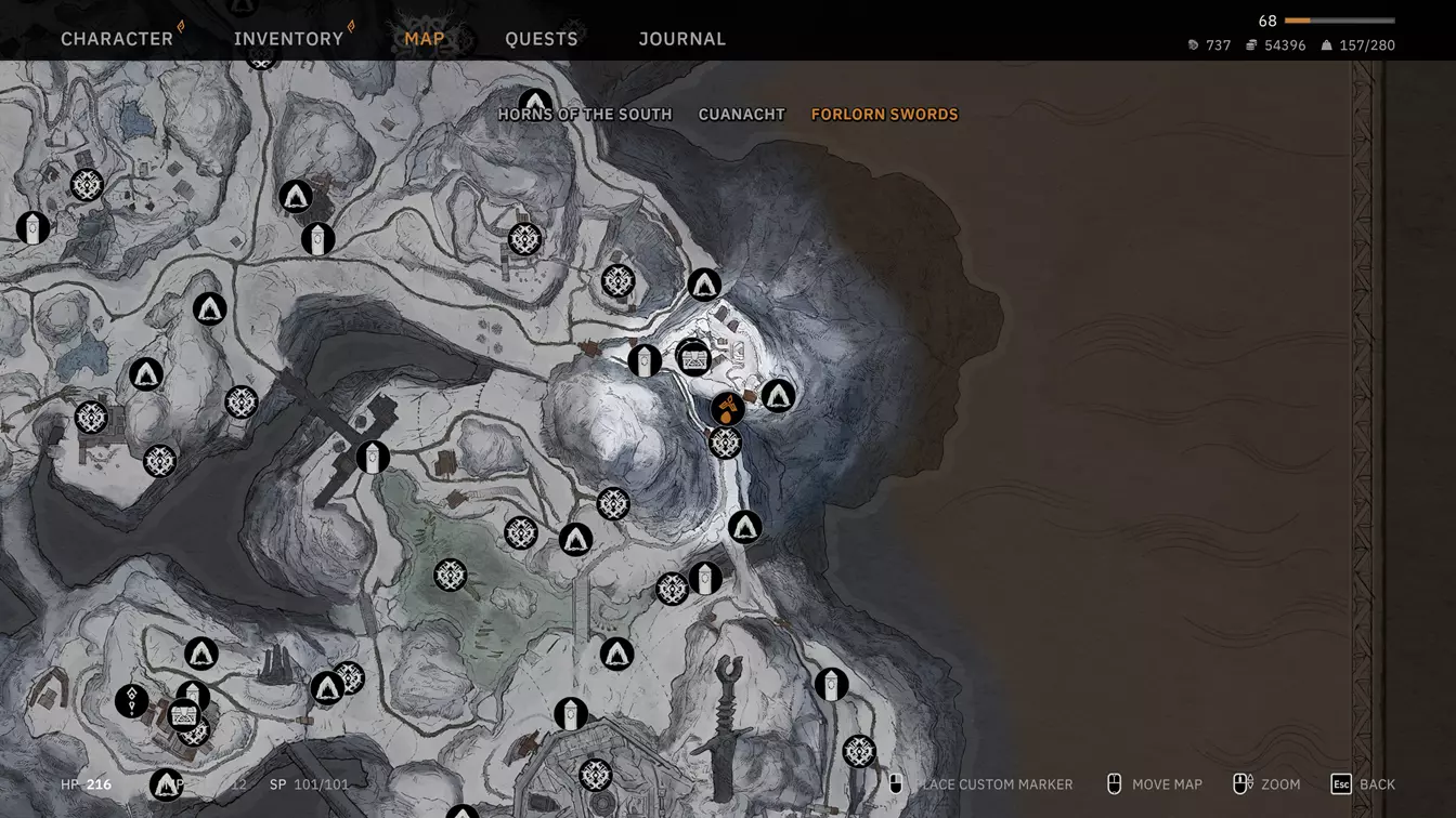 以下内容包含部分剧透,但主要是指引前往位置。 总体而言: 建议将此内容留到游戏即将结束前再进行,因为这需要主线故事中获得的部分遗物。感谢开发者指引我前往库阿纳赫特隐藏地点和部分古墓的方向。 你需要前往三个隐藏区域,并解锁五个古墓。在这些地方,你主要会获得大量剧情信息,而在最终的隐藏区域,你将获得一个物品,只要你同时通过清理所有古墓获得了相关信息,就能在游戏结局时选择这个结局。我认为前两个隐藏区域(南之角和库阿纳赫特)可以按任意顺序进行,但遗弃之剑的隐藏区域需要解锁前两个后才能进入。只要拥有合适的遗物,随时都可以进入古墓。 隐藏地点1: 获取【王者之剑】后,前往【大尖塔】并打开那里的门,在里面会触发一段对话。
